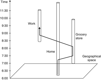 집 - 식료품점 - 직장으로 가는 시공간 패턴