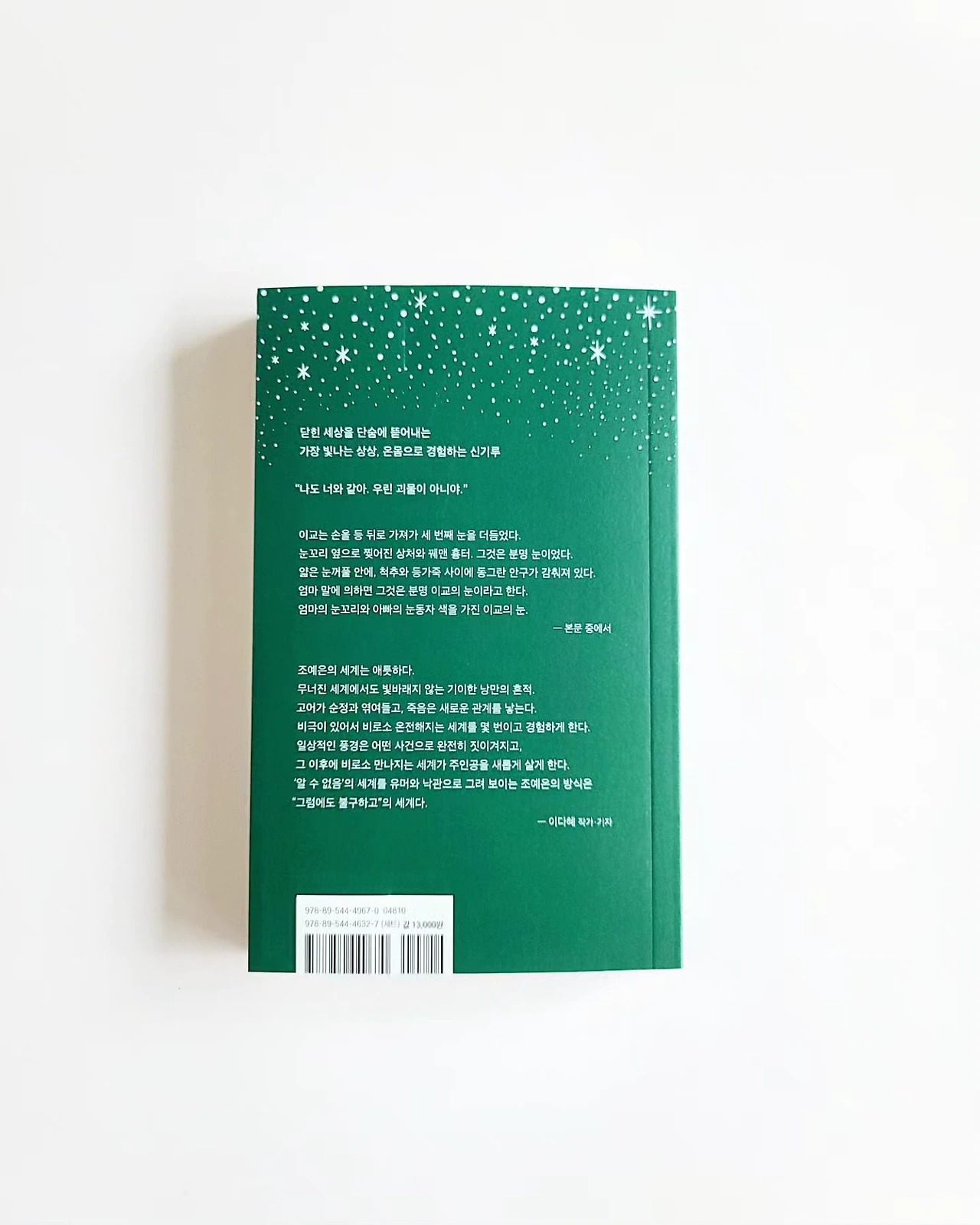 기이하지만 순수하고 낭만적이고 동화 같기도 하다. 주인공들과 함께 절망 속에서 마치 새로운 희망을 찾을 수 있을 것 같은 메시지를 주는 조예은 작가만의 작품 세계가 잘 드러난다.