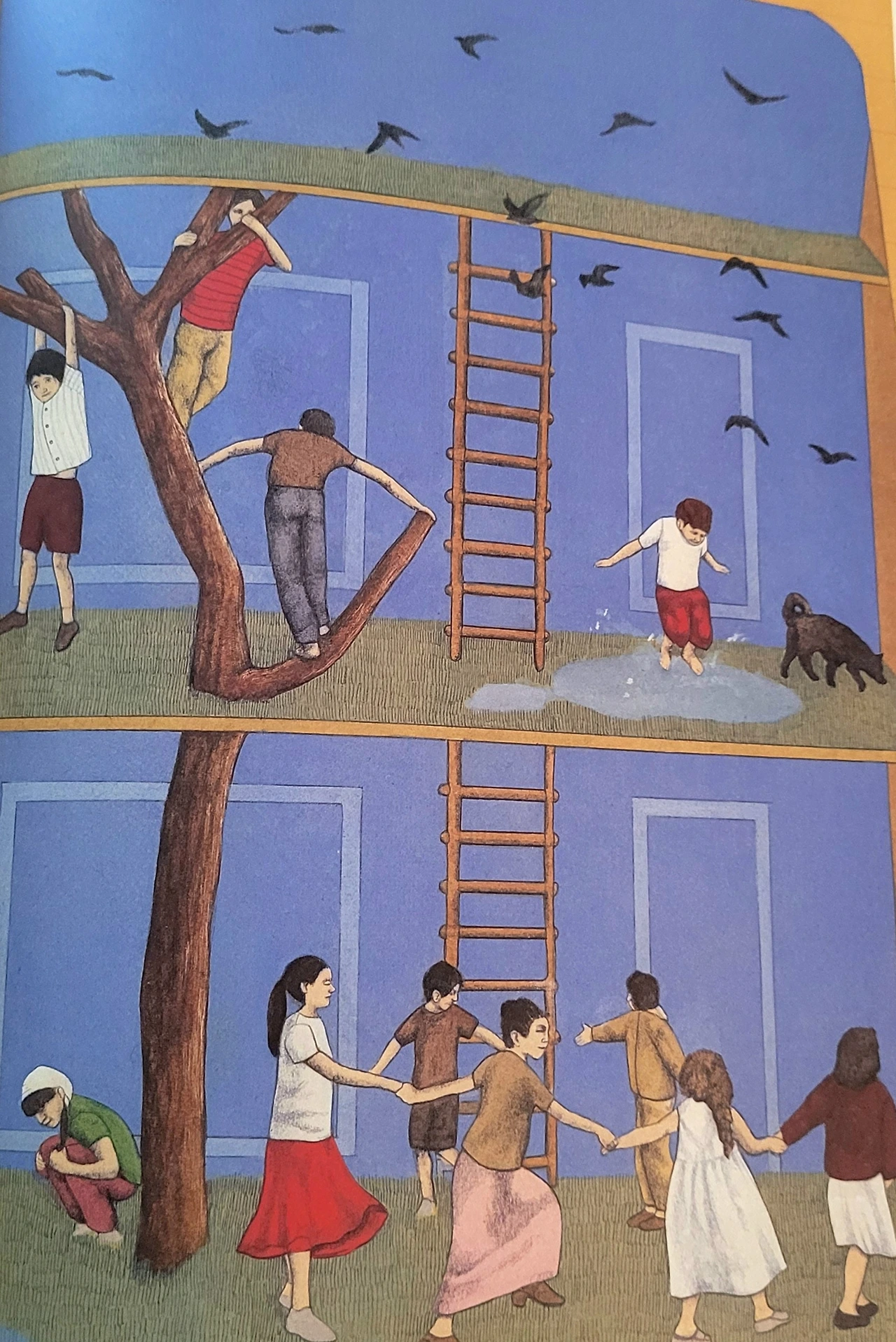 내 동생과 나는 마당에 있는, 나무에 고무줄을 걸어, 고무줄놀이를 하기도 하고, 마당에서 자전거도 탔다.