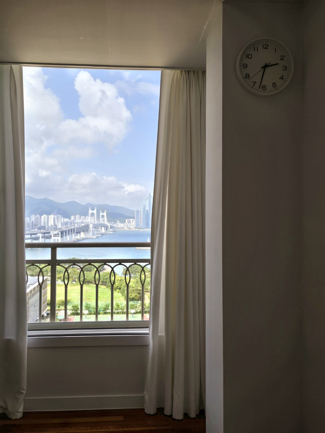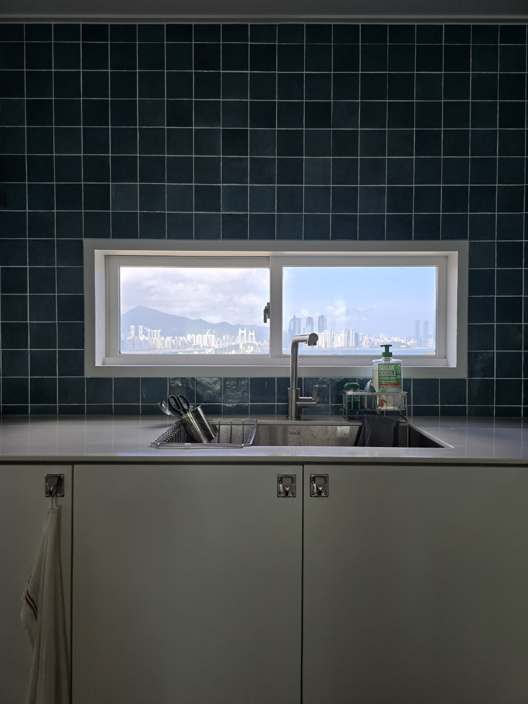1인용 식탁에 앉아 창밖을 바라보면 마치 한 폭의 그림처럼 익숙한 빌딩 숲, 산과 바다가 한눈에 들어온다. 설거지를 하는 동안에 창밖을 내려다보며 첨벙첨벙 튀어 오르는 숭어들과 그들을 노리는 왜가리를 구경하고 학교 운동장에서 축구와 농구를 하는 어린이들도 구경한다.