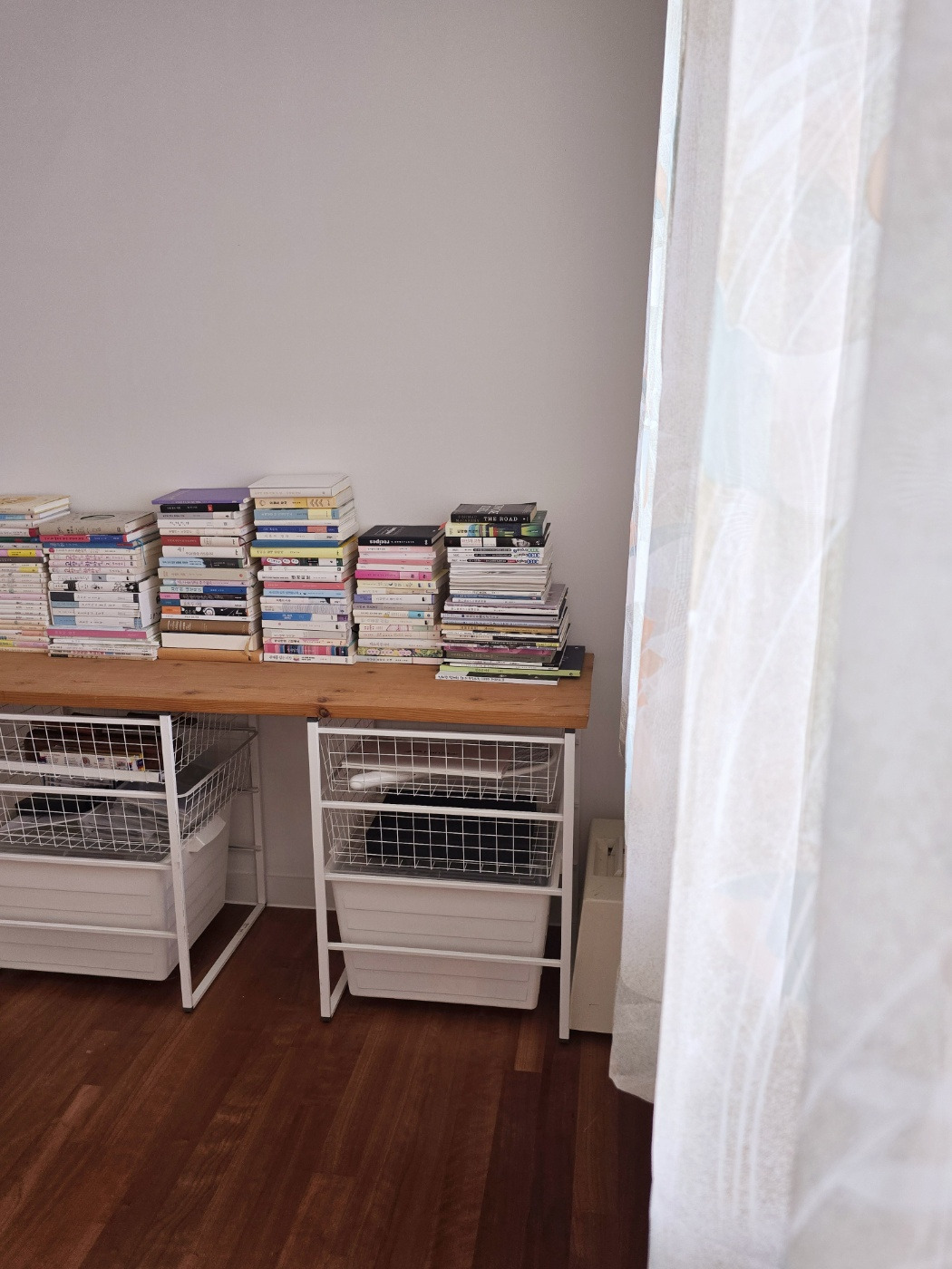 그래도 드레스 룸에 딸린 욕실에는 선반도 달고 세면기가 바닥에 배수관이 있어서 이케아에서 장난감 같은 수납장 하나도 들여놓았다. 여기에 청소 솔과 세제를 보관하는데 엄청 편하다. 보통 샤워 수전은 위에 달지만, 아래에 달았다. 시공자가 너무나 의아해해서 앉아서 샤워를 한다는 지극히 사적인 정보를 말해 주었다. (이왕 말한 김에) 서서 씻으면 뭔가 불안하다고나 할까. 꼼꼼하게 씻을 여유가 사라진다고 해야 하나 그래서 앉아서 씻는데(우리 많이 친해졌군요) 물도 사방팔방 안 튀고 암튼 좋다는 그런 이야기.