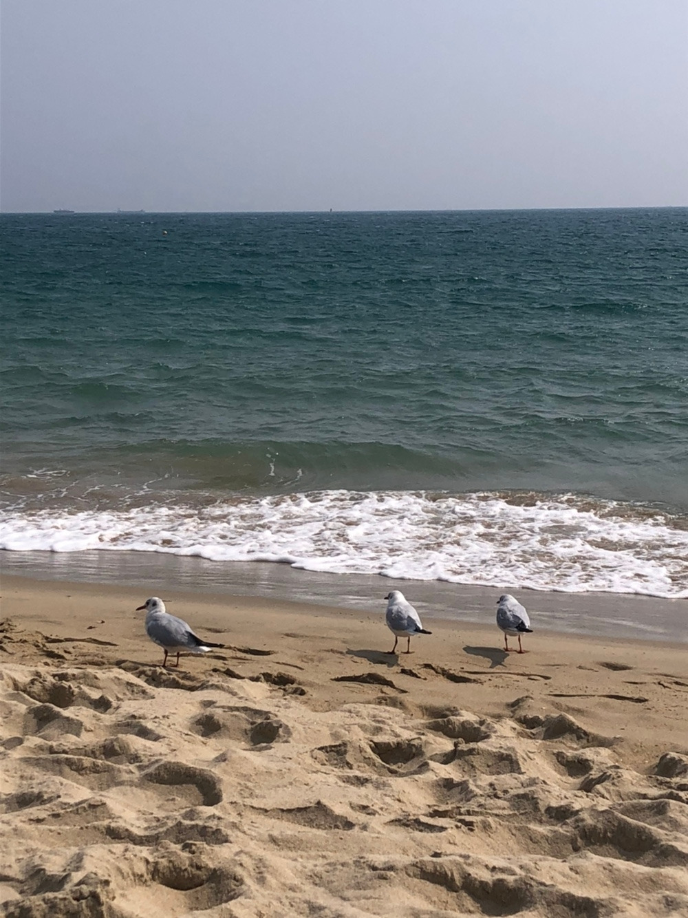갈매기들을 구경했다. 몰래몰래 조심조심 갈매기들 뒤에 앉아있는데 조그만 것들이 뛰어와서 갈매기를 쫓아낸다. 날아오른 갈매기들이 다시 모래사장 위에 자리 잡을 때까지 기다렸다가 다시 그들 뒤에 몰래몰래 조심조심 앉았다. 관찰 결과 갈매기들도 바람이 세게 불면 눈을 게슴츠레하게 뜬다는 것을 알았다.