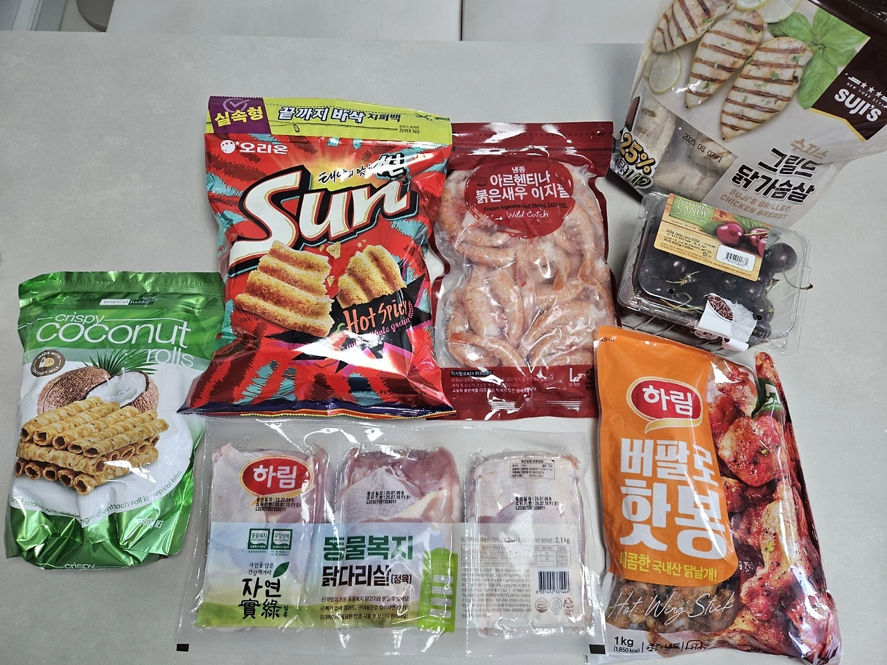 대용량 식재료 위주인 코스트코가 2인 가구에는 맞지 않다고 생각해서 가지 않다가 처음 코스트코에 가게 된 건 우리와 친한 동생과 함께였다. 코스트코에서 관찰레라는 돼지 볼살 햄을 사고 싶다는 동생의 말에 놀러 가듯 가게 되었다. 식재료에 관심이 많았던지라 ‘우와’를 연발하며 신나게 장을 봤다. 3개씩 묶어서 파는 매직랩은 함께 사서 나눠 가졌다.
