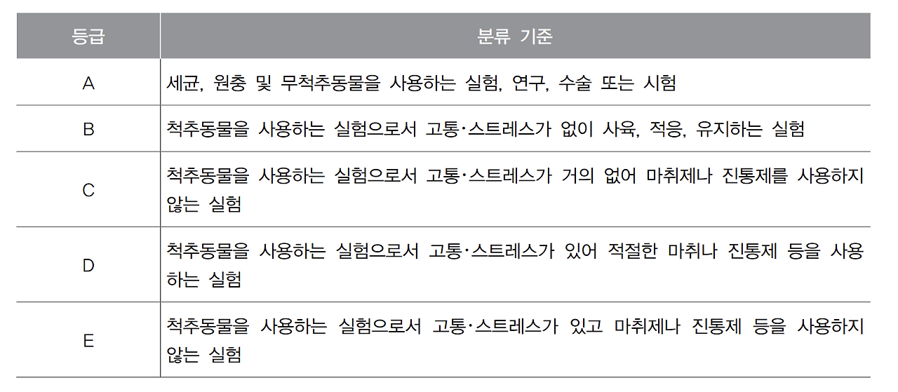 개체 유지를 위해 사용되는 마우스는 고통등급 B로 평가된다.