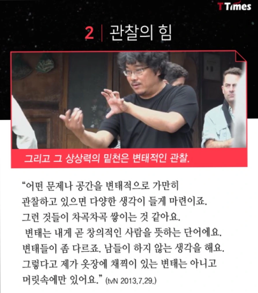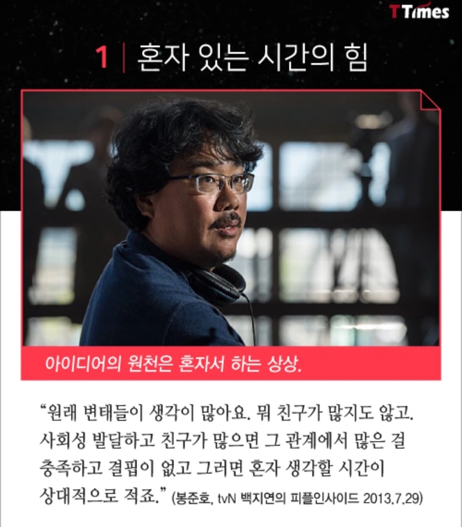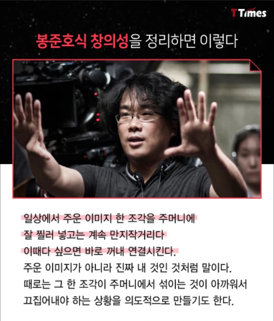 봉준호 감독이 이야기한 ‘예민한 촉수’란, 결국 세상의 부조리와 모순을 감지해내는 심리적 레이더다.