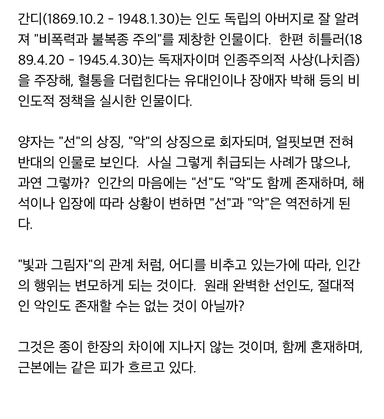 나는 히틀러가 되지 않기 위해 매일 간디를 호출한다.