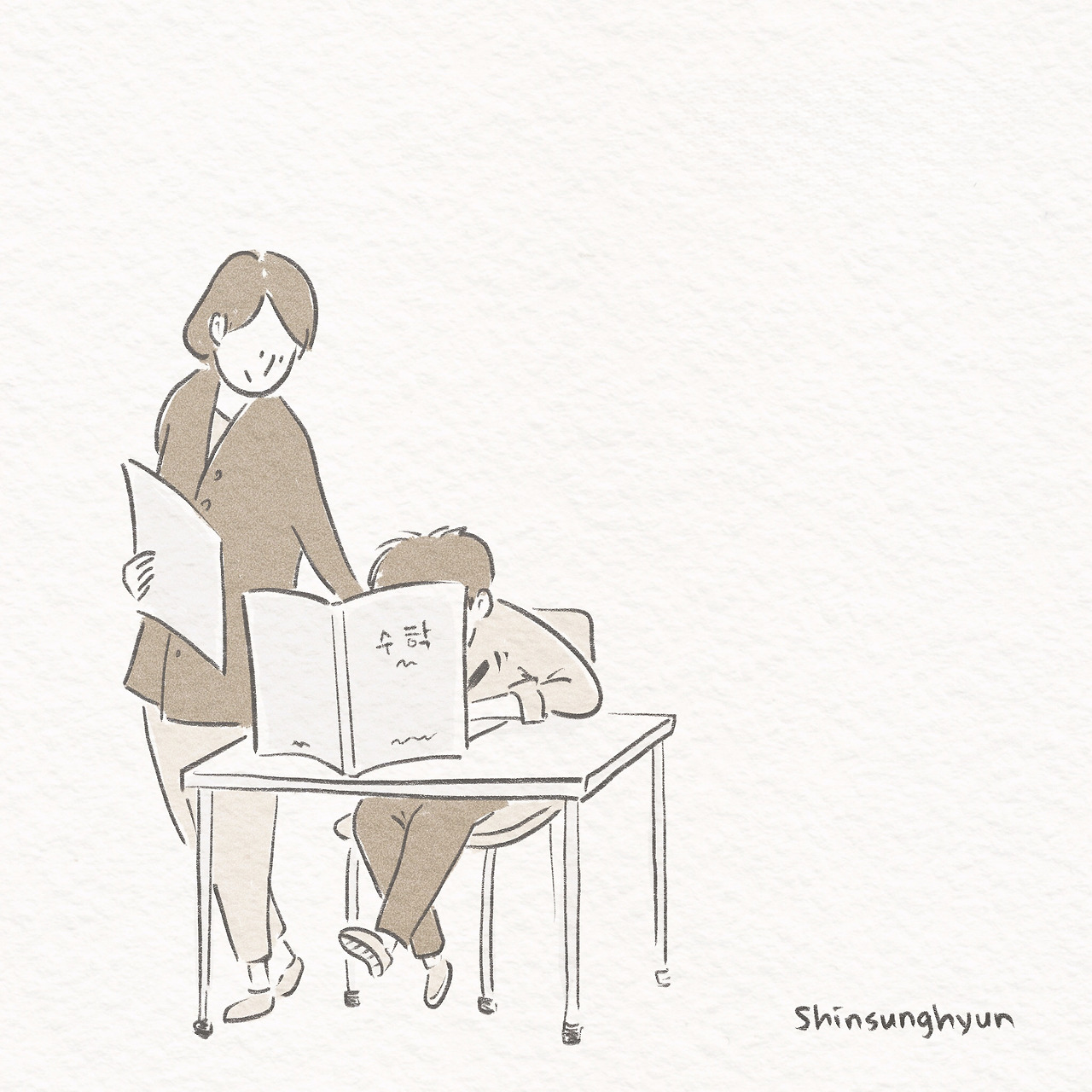 난 중학교 다닐 때 수업은 안 듣고 엎드려 자거나 책 뒤에 숨어서 그림만 그리고 있는 아이였어.