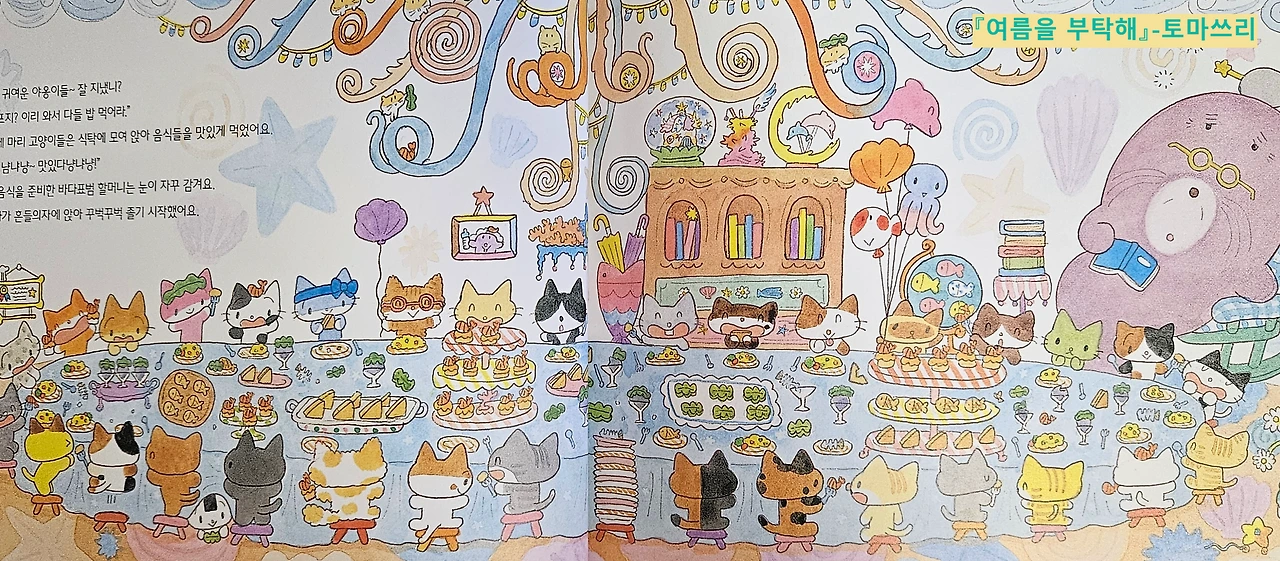 우리 세 자매는 결혼하면 엄마·아빠랑 같이 살지 못한다니 결혼을 안 한단다. 과연 그럴까. 사랑하는 사람에게 폭 빠져서 알콩달콩 살아야지. 아이들이 가정을 이루고 아이를 낳는다면 내가 꼭 도와줘야지 생각한다. 내 딸들이 맘 편히 자신들의 꿈을 펼치길 바라는 마음 때문이다. 혼자 이 생각 저 생각 하다 보니, 얼마 전 서평단으로 활동했던 토마쓰리 작가님의 『여름을 부탁해!』그림책이 생각난다.