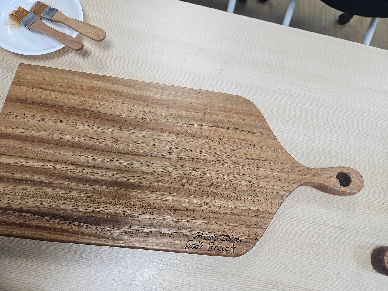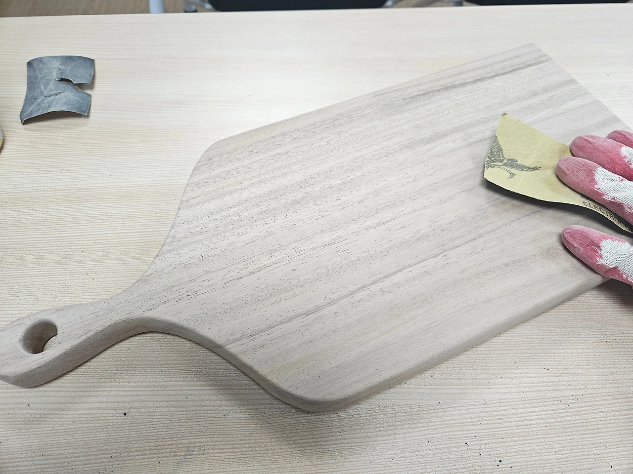 마무리로 오일까지 발라주니, 세상에 하나뿐인 도마가 완성됐다.