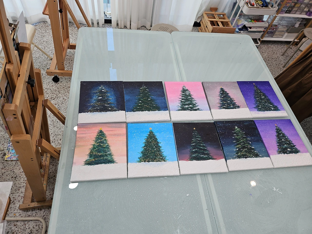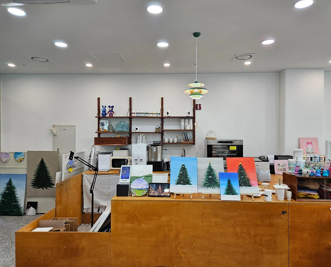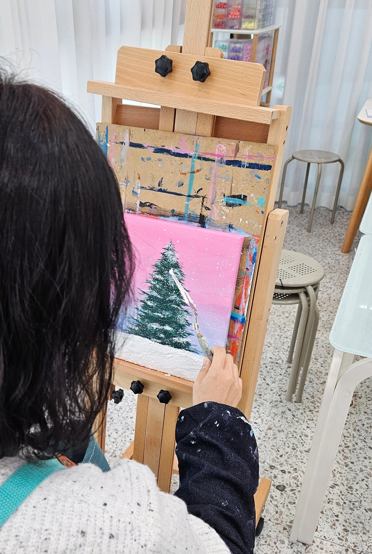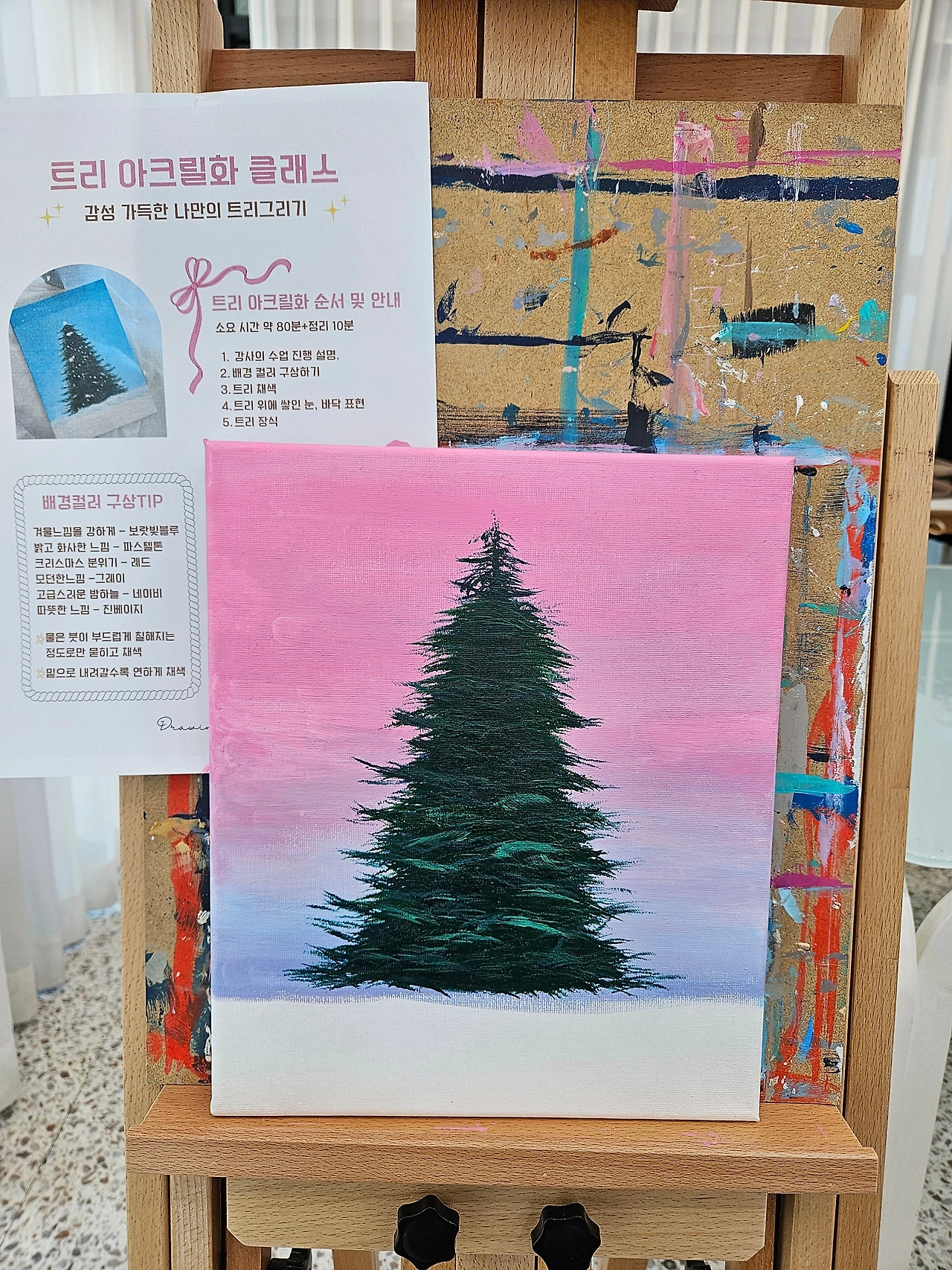 '아크릴화 그리기 수업에선 뭘 그리게 될까?' 기대하는 마음으로 공방에 들어섰다. 자유주제로 그린다면 뭘 그릴지 고민하고 있었는데, 오늘의 주제가 미리 정해져 있었다. 바로 <나만의 트리 그리기>!