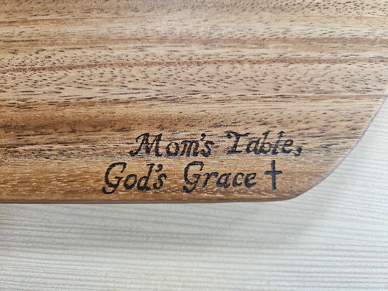 그리고 오늘의 하이라이트, 각인! 달궈진 인두로 조심조심 천천히 글을 쓰는 동안, 나무 타는 냄새가 구수하게 코를 간질였다. 이번 작품은 마침 다음 주 엄마 생신 선물로 딱 좋았다.