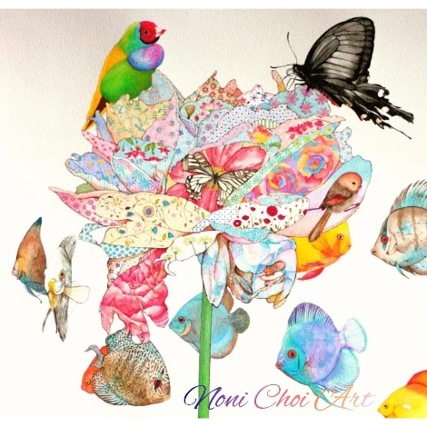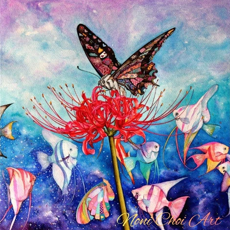 Butterfly heaven 나비의 천국, 종이 위에 수채. 2016년 作
