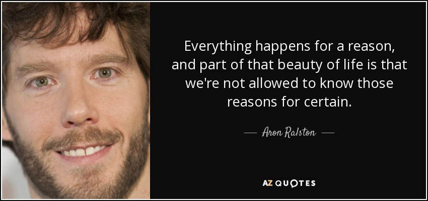 모든 것은 이유가 있어 일어나고 우리가 그 이유들을 알 수 있도록 허락되지 않다는 것에 인생의 아름다움이 있다. -오른손 없이 살지만 행복한 아론의 명언