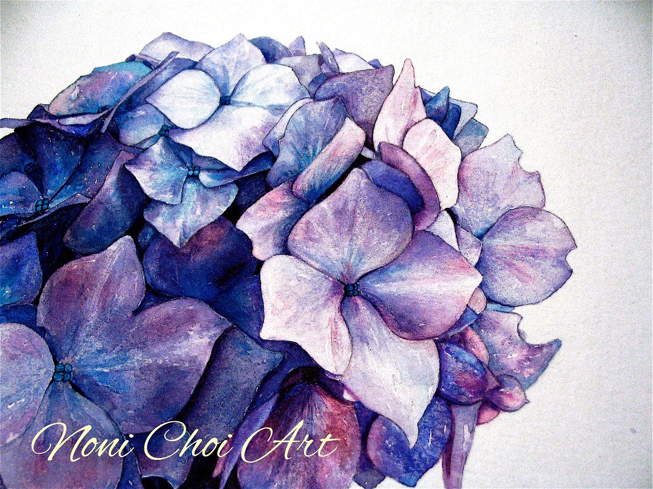 수년 전 어느 여름, 세밀화 공모전에 도전한 적이 있었습니다. 식물세밀화 과정을 공부하기 전이라 꽃사진보고서 그저 똑같이 그려내면 될 거라 쉽게 생각하며 좋아하는 여름 꽃 수국을 주제로 정하고 몇 해 전 뉴질랜드에서 직접 찍어온 수국 사진을 보며 그림을 그리기 시작했습니다. 그런데 그리다 보니 아무리 그려도 끝이 없는 징글징글한 꽃잎들과 너무나도 그리기 까다로운 깻잎같이 생긴 잎의 짜증유발 생김새에 몇 번이나 좌절하고 그리기 싫은 마음이 올라와 게으름을 피우다 공모전 마감일이 그만 코앞에 닥치고 말았어요. 어릴 때부터 발등에 불이 떨어져야 실행하는 벼락치기 인생을 살아왔기에