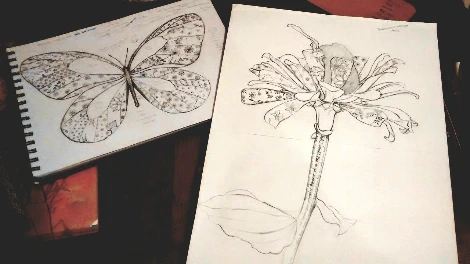 로토루아에서 그린 나비와 백일홍 연필 밑그림
