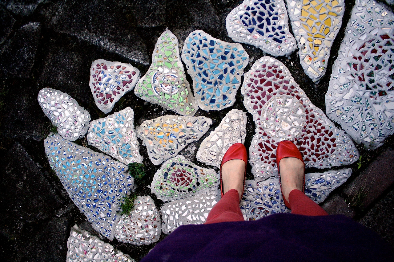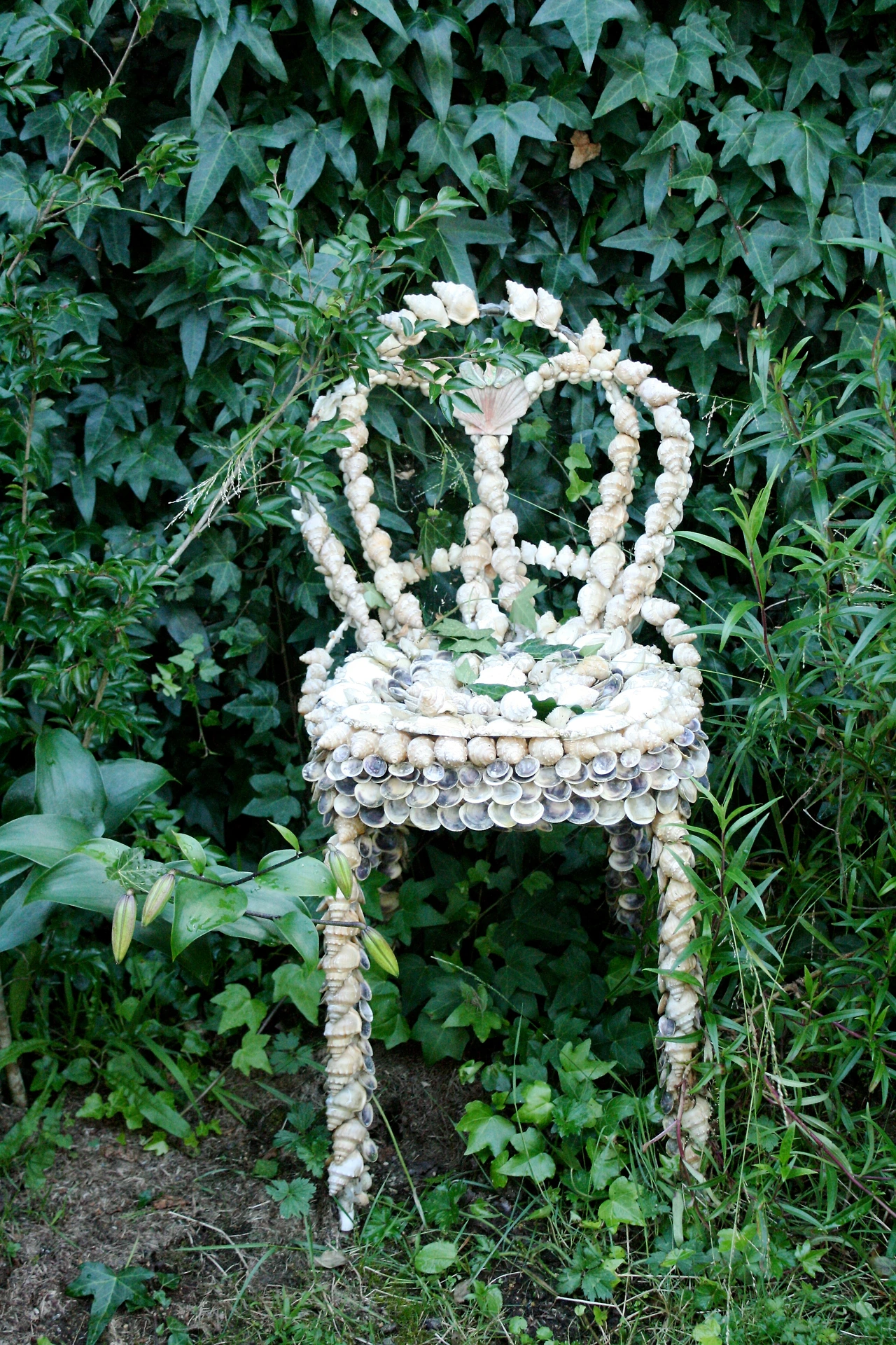 정원에 피어있던 수국과 조개껍데기로 장식한 의자, 그리고 브리짓이 직접 만든 타일 모자이크 디딤돌
