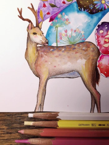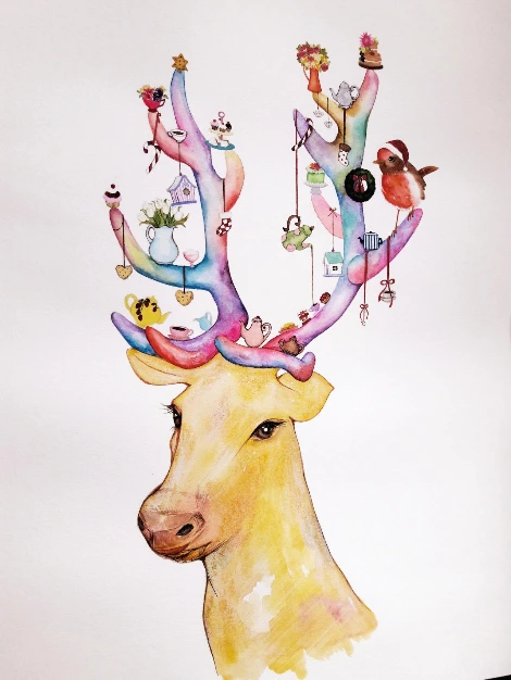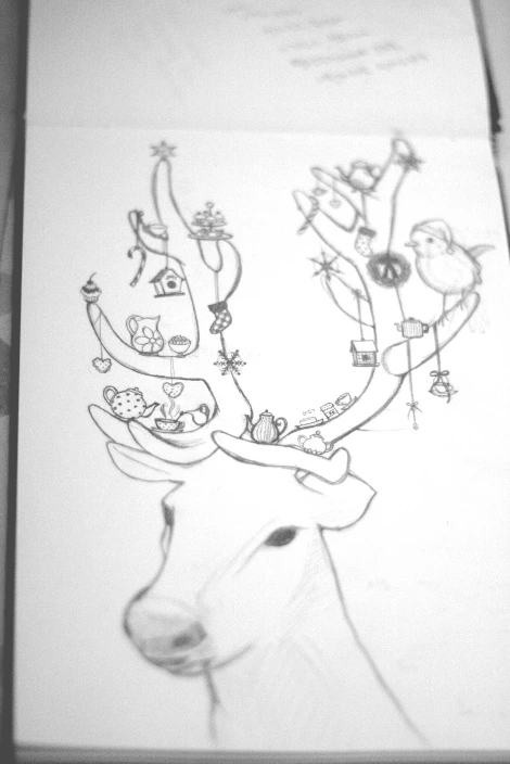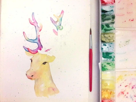 아직 바탕을 칠하지 않은 미완성이지만 사슴이야기에 적합하기에 넣어봅니다. 크리스마스 카드 디자인으로 그렸어요.