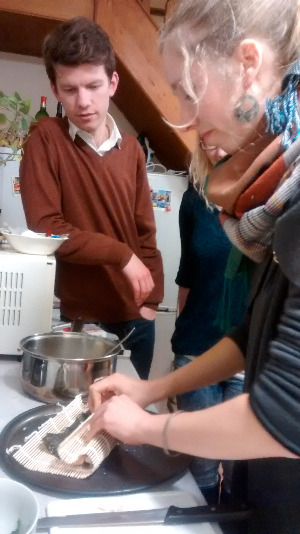 갖은 채소를 얇게 채 썰어 만든 부침개도 김치와 찰떡궁합이었다. 김밥 만드는 법도 무료 원데이 클래스로 선보여줬더니 다들 대환장을 하며 김밥 한번 말아보겠다고 아우성이었다. 얘네들을 김밥천국에 데려가 무임금 노동착취를 할 사장님이 생길까 봐 두려울 정도였다. 먹는 것에 진심인 우리나라 못지않게 프랑스도 요리하면 빼놓을 수 없는 식도락의 나라이다. 그런 프랑스 사람들이 K푸드에 열광하니 묘하게 뿌듯하고 재미있었다. 십 년 전만 해도 한국음식을 먹어본 외국인이 드물었다. 이젠 너도나도 한국음식과 문화에 호들갑인 시대에 접어들어 신기하기만 하다.