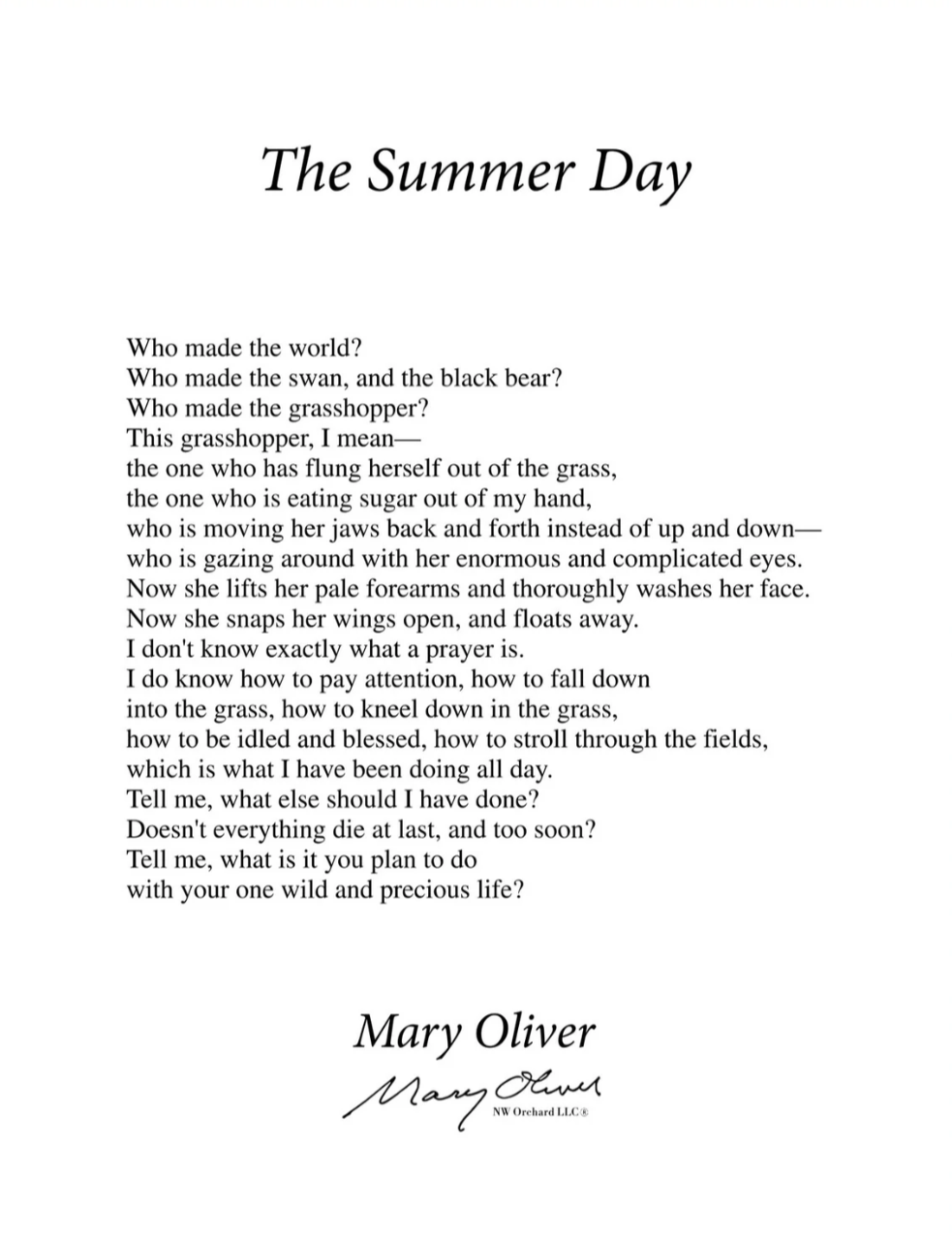 미국 시인 Mary Oliver의 '여름날' 중에서