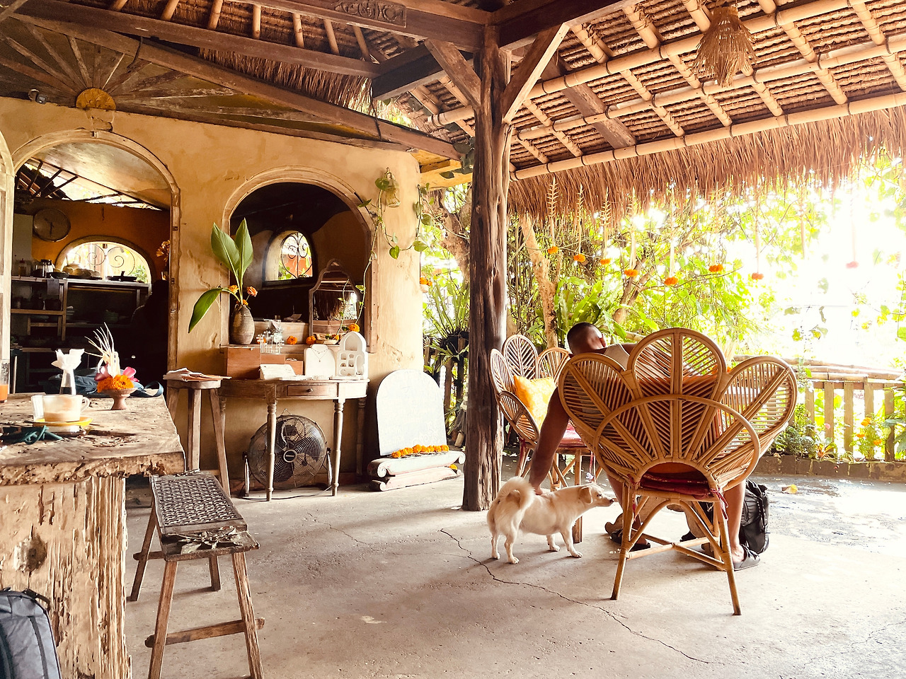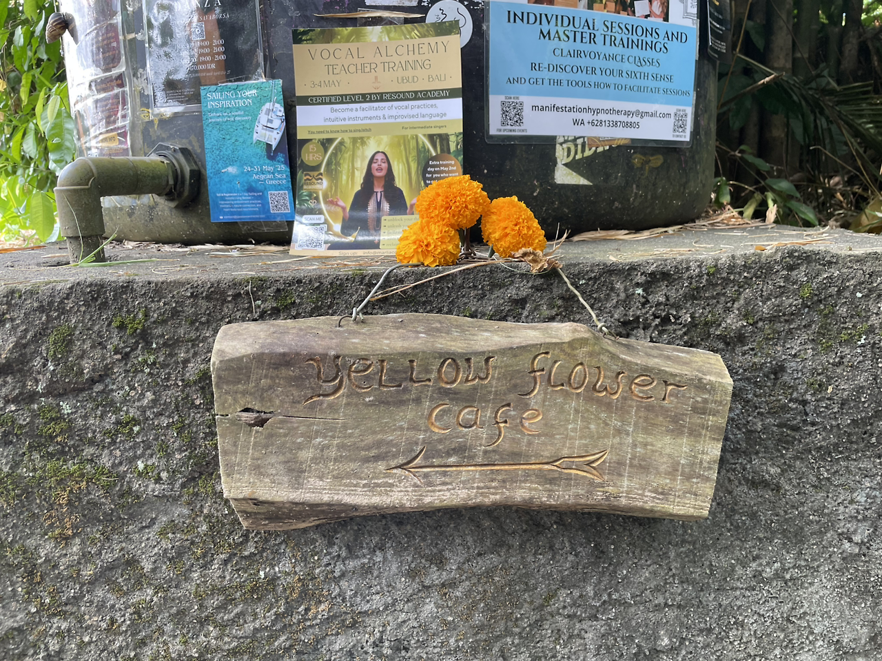 2025년 4월 말 발리에 휴가 왔을 때 이 카페를 알게 되고 5월에 한국 생활을 모두 정리한 뒤 숙소를 정하며 이 동네로 오고 싶었지만 전망이 좋아서인지 너무 비싸 예산이 감당을 못할 것 같아 그 옆동네의 홈스테이를 예약했고 한 달간 지내며 자주 찾아왔어요. 일주일에 한두 번 카페 바로 옆 인튜이티브 요가에서 요가하고 이곳에서 목을 축이고 배를 채워요. 눈이 축 쳐진 발리 강아지도 만나고 한들한들 피어있는 노란 꽃들 너머로 초록이 우거진 볼케이노 뷰를 감상하며 치유의 시간도 가져요. 눈도 혀도 배도 마음도 한순간에 편안해지는 마법의 공간입니다.