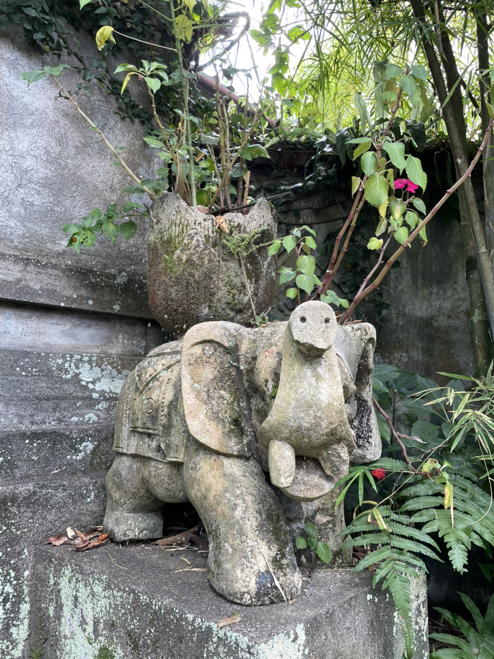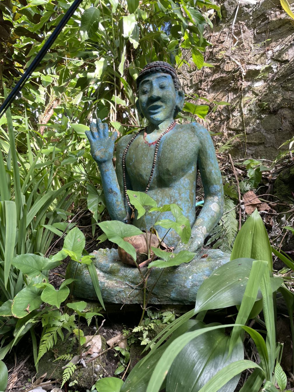 가파른 계단을 많이 올라 숨차고 무더웠지만 표정이 꺼벙하면서 뭔가 띠꺼워보이는 하늘색 불상과 귀여운 집들을 카페 가는 길에 발견하고 기분이 좋은 상태로 카페에 도착했어요. 이런 아름다운 길을 걸은 것도 행운이었는데 목적지에 도착하고 나니 환상적인 전망이 눈앞에 펼쳐져 속으로 방방 뛰었어요.
