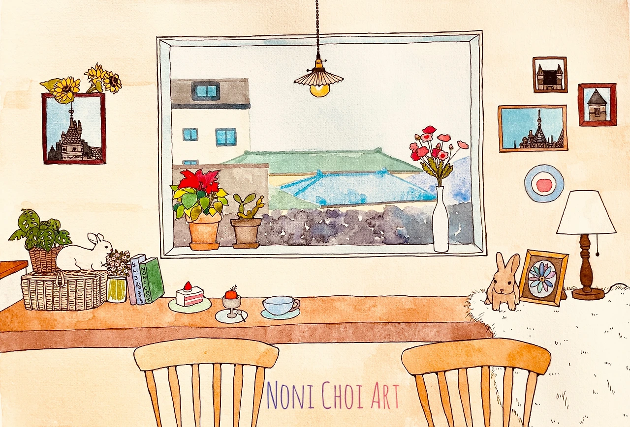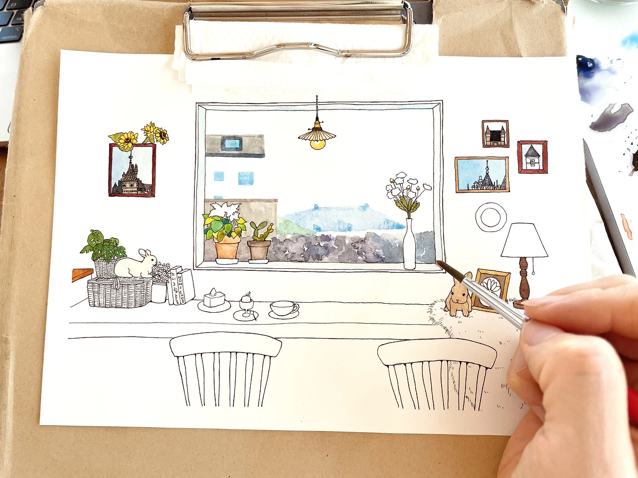 그림 같은 집 그리기 '토끼네 집으로 오세요' 종이 위에 펜, 수채