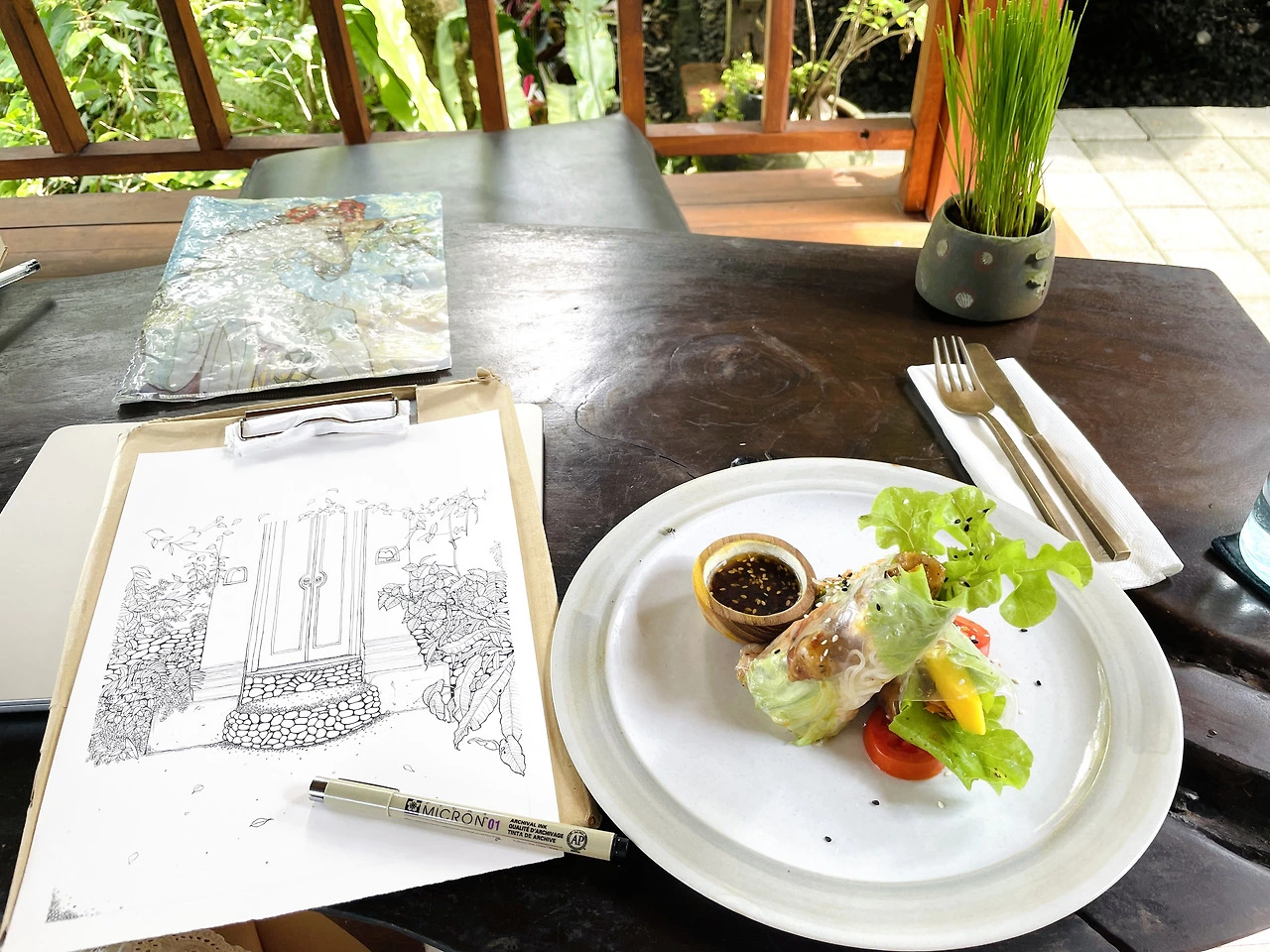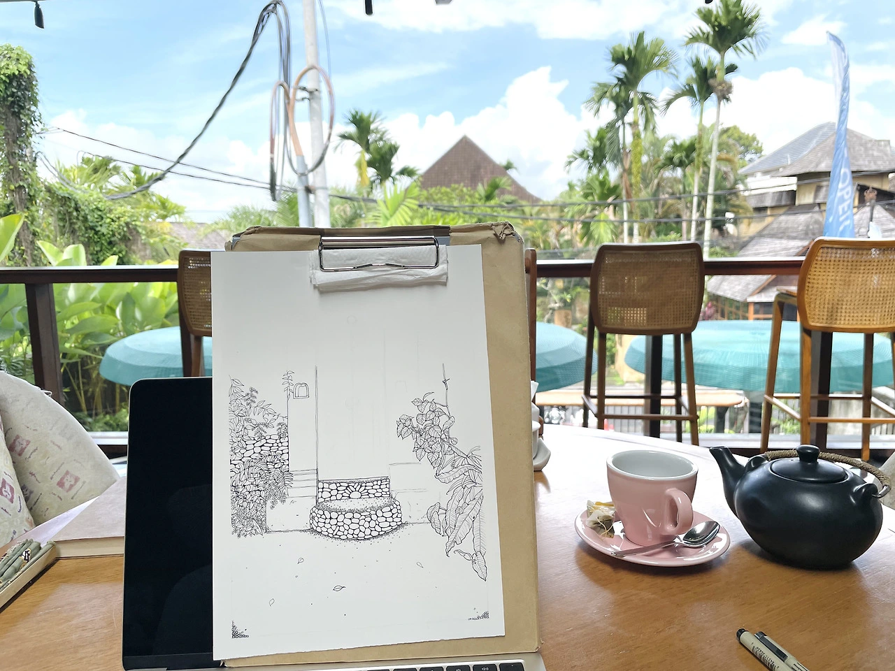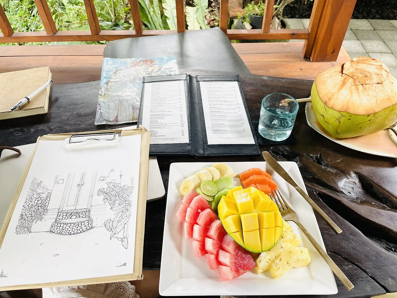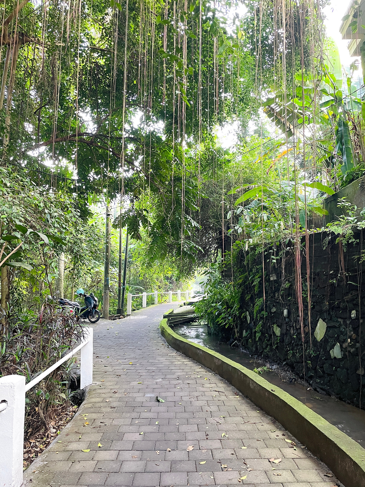 우붓이 좋은 이유 중 하나는 나무가 무성하다는 점이에요. 초록의 마법이 눈길 주는 곳마다 펼쳐진 우붓은 평화롭고 잔잔한 에너지로 저를 진정시켜요. 식재료 사러 슈퍼마켓 가는 길에 아름다운 집들도 보고 초록 기운 받으며 힐링도 하는 호사를 누려 영광인 동시에 깨닫는 점도 있어요. 빈땅 슈퍼마켓은 새 단장을 위해 현재 공사 중이라 뒤편의 건물에서 임시영업 중인데 공사장 인부 속에 여자분들도 많아 처음엔 그분들을 보고 놀라버렸어요. 그늘에 가만히 있어도 힘든데 아침부터 푹푹 찌는 햇볕 받으며 무거운 돌을 가득 넣은 대야를 머리에 이고 옮기는 발리 중년 여자분들을 보면 절로 겸허해지고 불만 덩어리인 제 자신을 반성하게 돼요. 노동의 대가로 월 30만 원가량의 돈을 받는다는 인도네시아의 노동자들은 그 힘든 일을 하는 와중에 좁은 길을 조심스레 비켜서며 제게 먼저 지나가라고 환히 웃으며 양보합니다, 머리 위에 돌을 잔뜩 이고서.