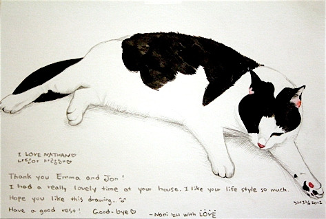 저는 2011년 부터 호주, 뉴질랜드, 영국, 스위스에서 캣시터로 많은 고양이를 돌봐온 경험이 있습니다. 비염이 그때부터 심하게 도지고 알러지가 있다는 걸 알게 되었지만 재채기하고 코피터져도 임시집사로 행복한 경험을 한 것에 감사합니다. 하우스시팅이 끝나면 여행에서 돌아온 집주인에게 고양이 초상화를 그려 선물로 드렸어요. 제주도에서 고양이 시터 필요하시면 연락바랍니다.