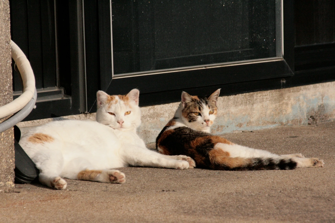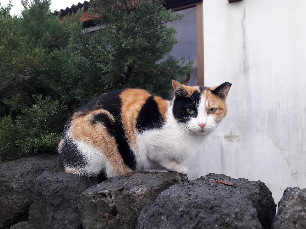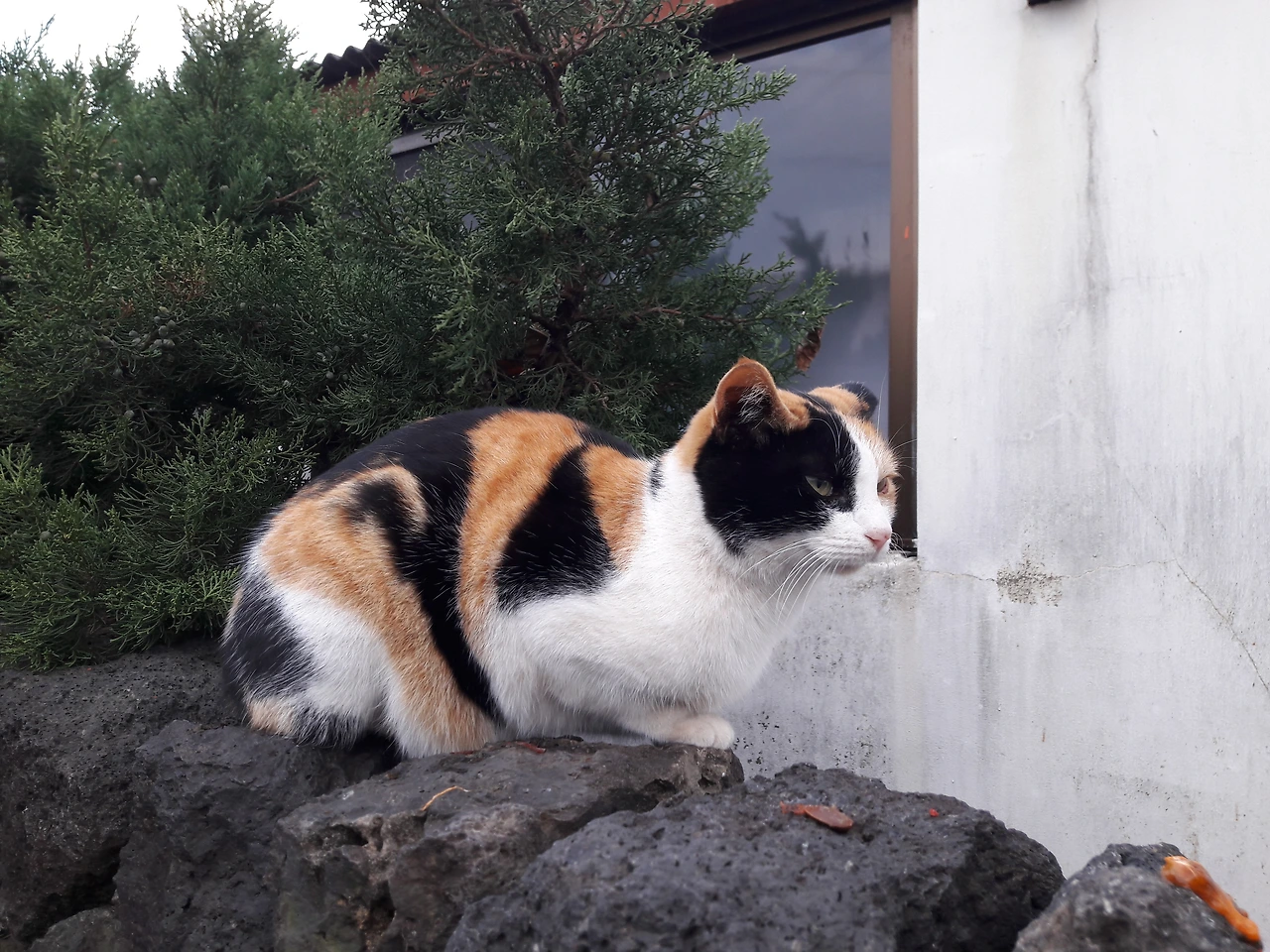 바닷가 동네 돌담길을 걷다 누군가의 시선을 감지하고 왼쪽으로 고개를 돌려보니 고양이 두마리가 저를 쳐다봅니다. 제가 내는 야옹 소리에 눈이 점점 휘둥그래지던 귀여운 집고양이들이에요.