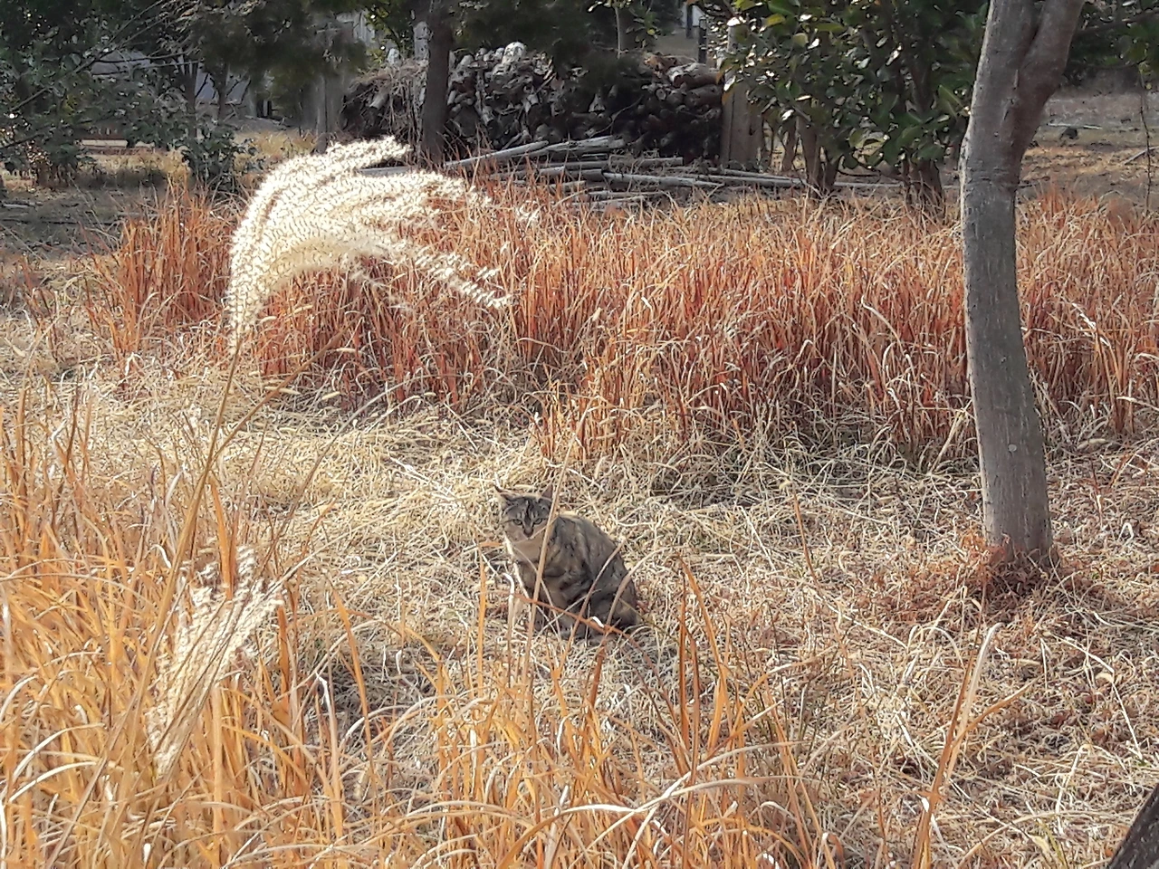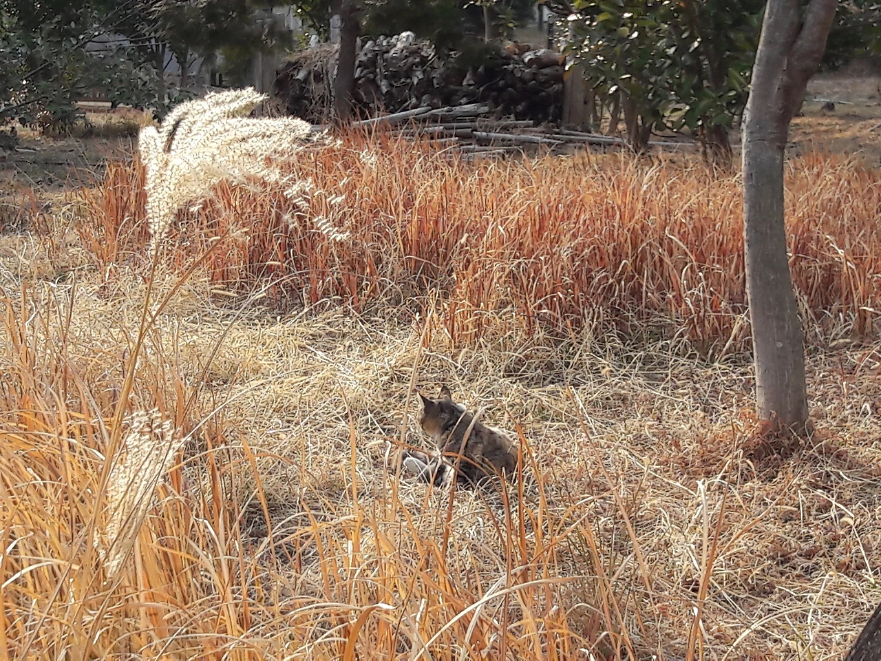 한낮의 겨울 햇살을 받으며 자유롭게 노닐던 이 들고양이는 햇볕에 따스하게 데워진 마른 풀위에 발라당 눕고 등짝 지지며 놀더니