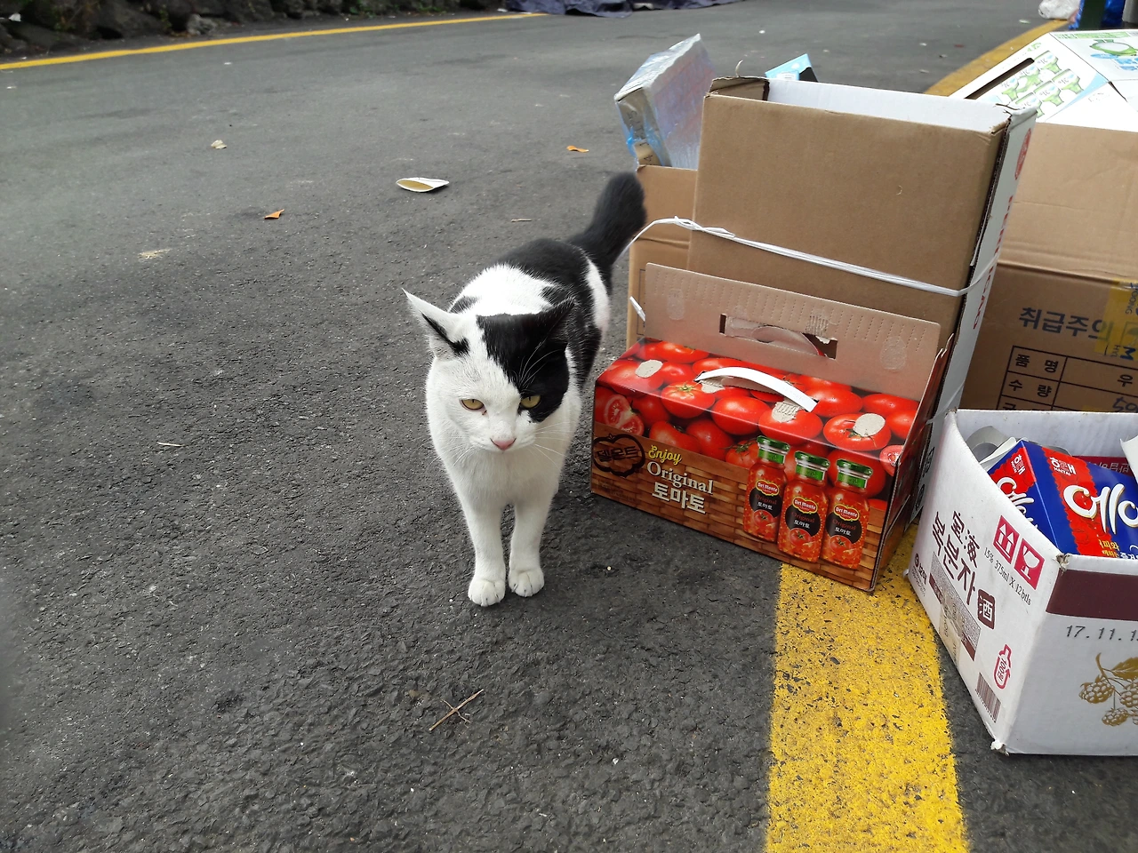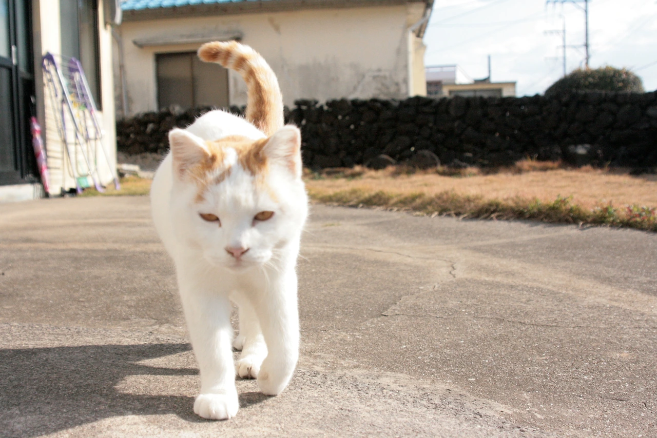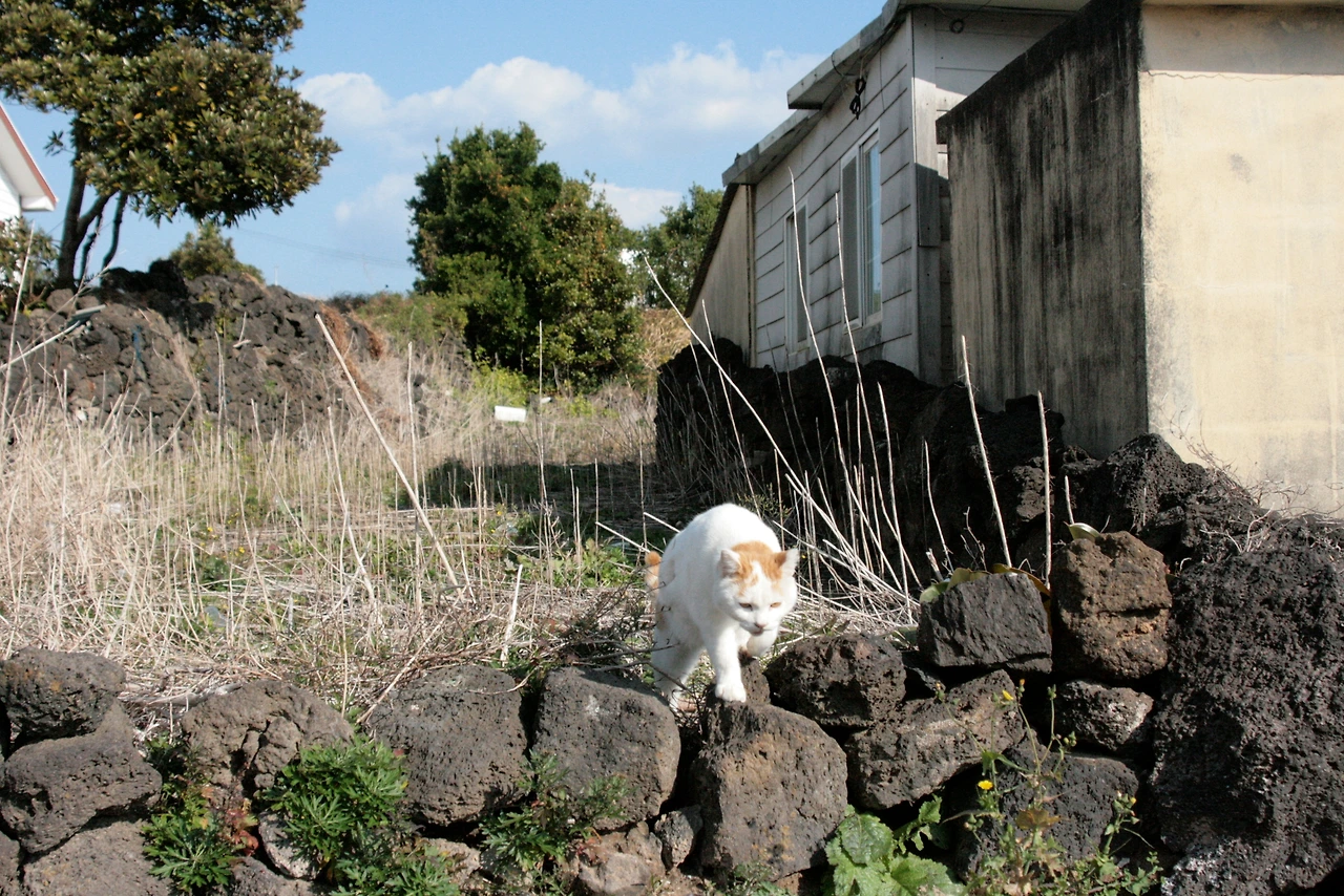 작년 늦가을 생애 처음 제주도 땅을 밟고 정착하기에 앞서 한달살기를 시작한 제게 생긴 첫 제주도 친구는 이 하얀 고양이였어요. 매일 다니던 도서관 근처 한적한 길목에서 기분좋은 첫 만남을 갖고 거의 매일 만나게 된 흰둥이는 부르면 개처럼 달려와서 냐- 냐- 쉴새없이 말을 거는 붙임성 최고의 고양이랍니다.