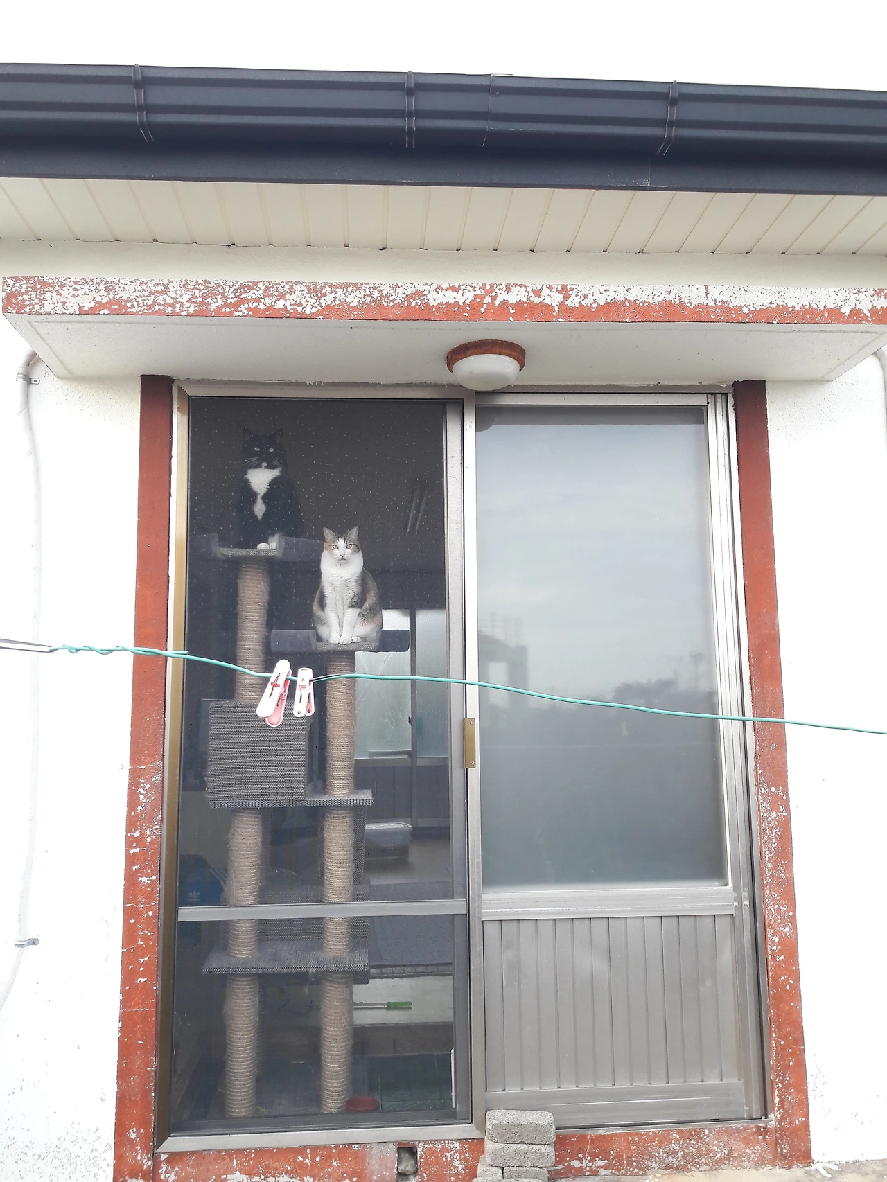 딸로 추정되는 수줍음 많은 삼색고양이와 낮잠을 즐기던 도중 카메라 셔터소리에 일어나 쳐다보는 아이들. 깨워서 미안하다 얘들아!
