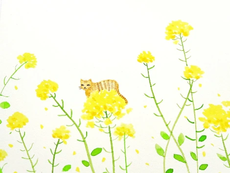 눈부시게 노랗던 유채꽃 사이로 서로를 말없이 바라보던 그 경이롭고 아름답던 순간을 렌즈에 담아 그림으로 옮겨보았어요.