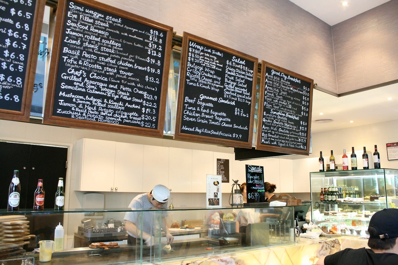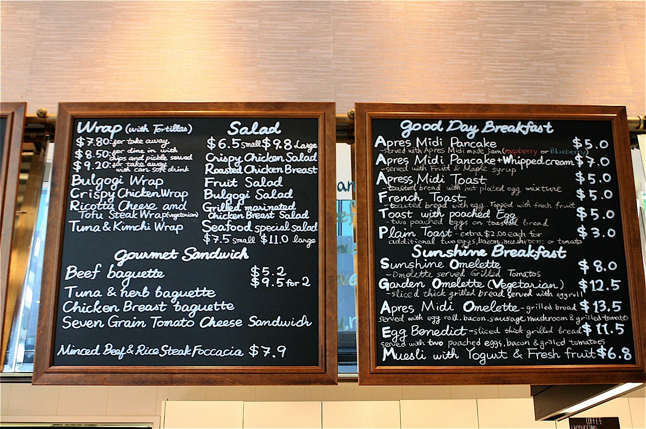 멜번 아프레미디 레스토랑을 위해 작업한 메뉴판. 칠판위에 초크, 2011
