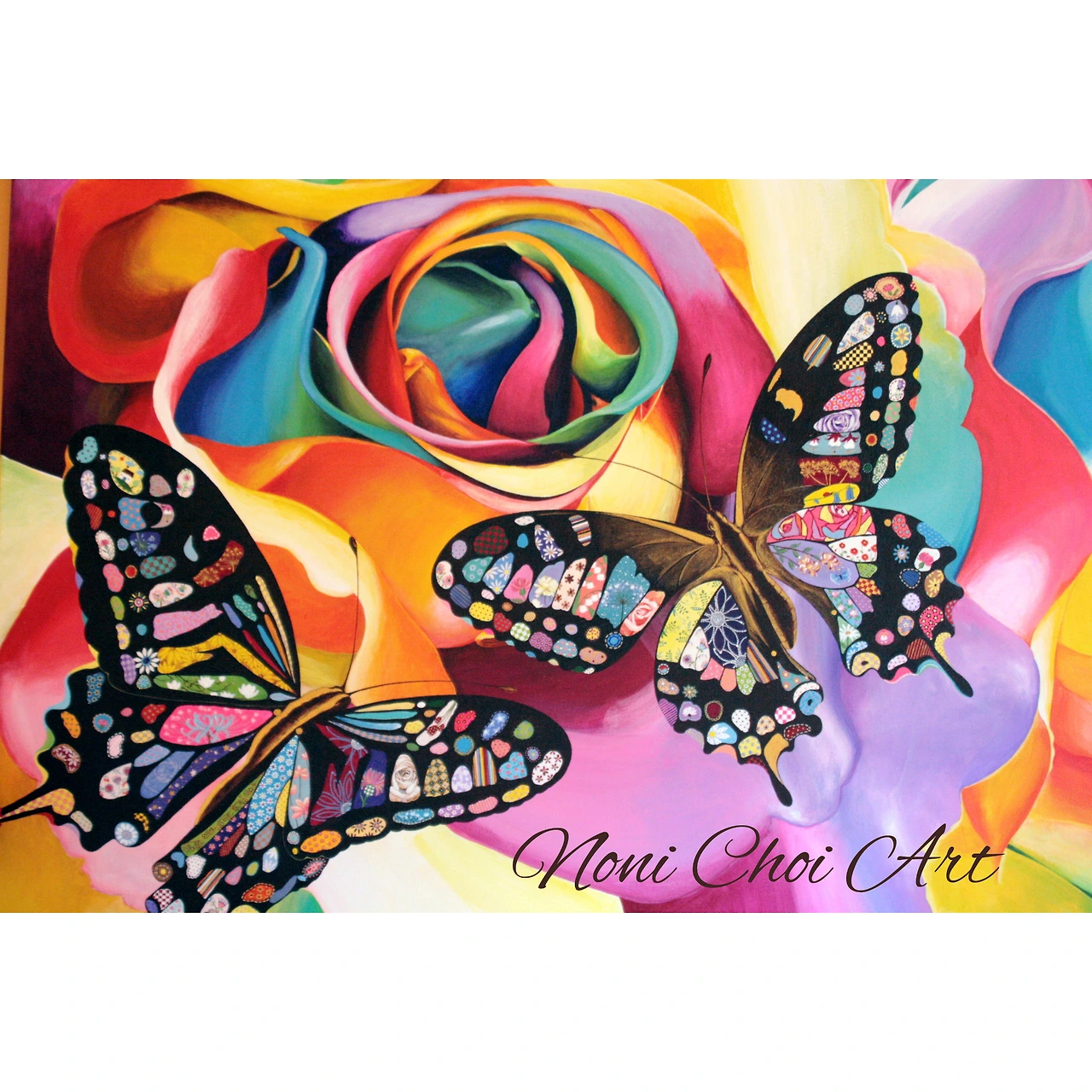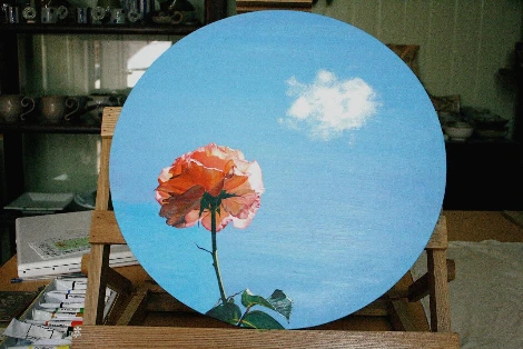 뉴질랜드 장미 위에 잠자는 장미 요정을 얹어 그리고, 별이 빛나는 밤하늘로 덧칠한 후 판매에 성공. 캔버스 위 아크릴, 2011.
