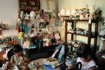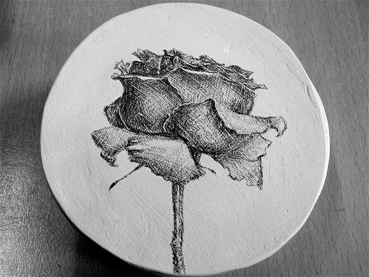 한국에서 주로 했던 일은 도자기 만들기와 아이들 도예 수업. 장미를 그려넣은 백토로 만든 도자기 보석함, 2007.