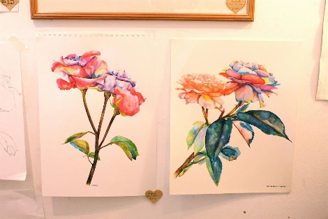 뉴질랜드의 햇살을 머금은 장미들. 종이 위에 수채. 작업실 벽면, 영국 브라이튼 JAG Gallery 2014