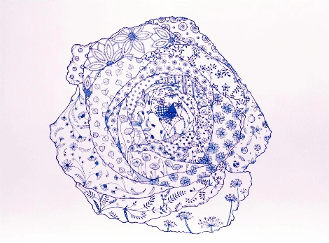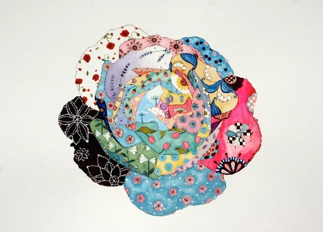 퀼트 장미. 종이 위에 수채, 아크릴, 2012. 씨트리 화장품 스팀크림 용기 디자인으로 채택