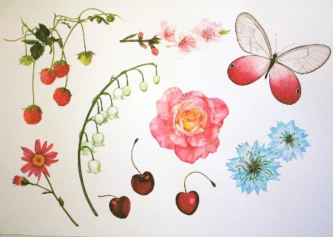 나비의 천국. 영국 식물화가 협회 디플로마 코스 졸업작품. 종이 위에 수채, 2016. 가장 힘들게 작업했던 작품입니다.