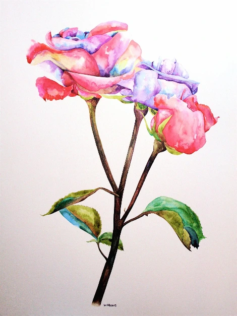 뉴질랜드 헤글리 파크 장미. 종이 위에 수채, 2014
