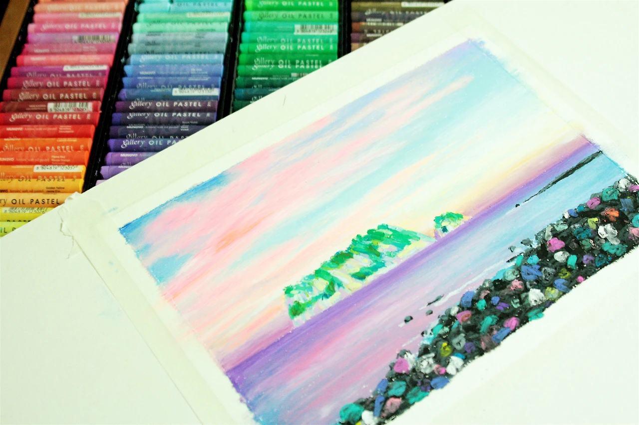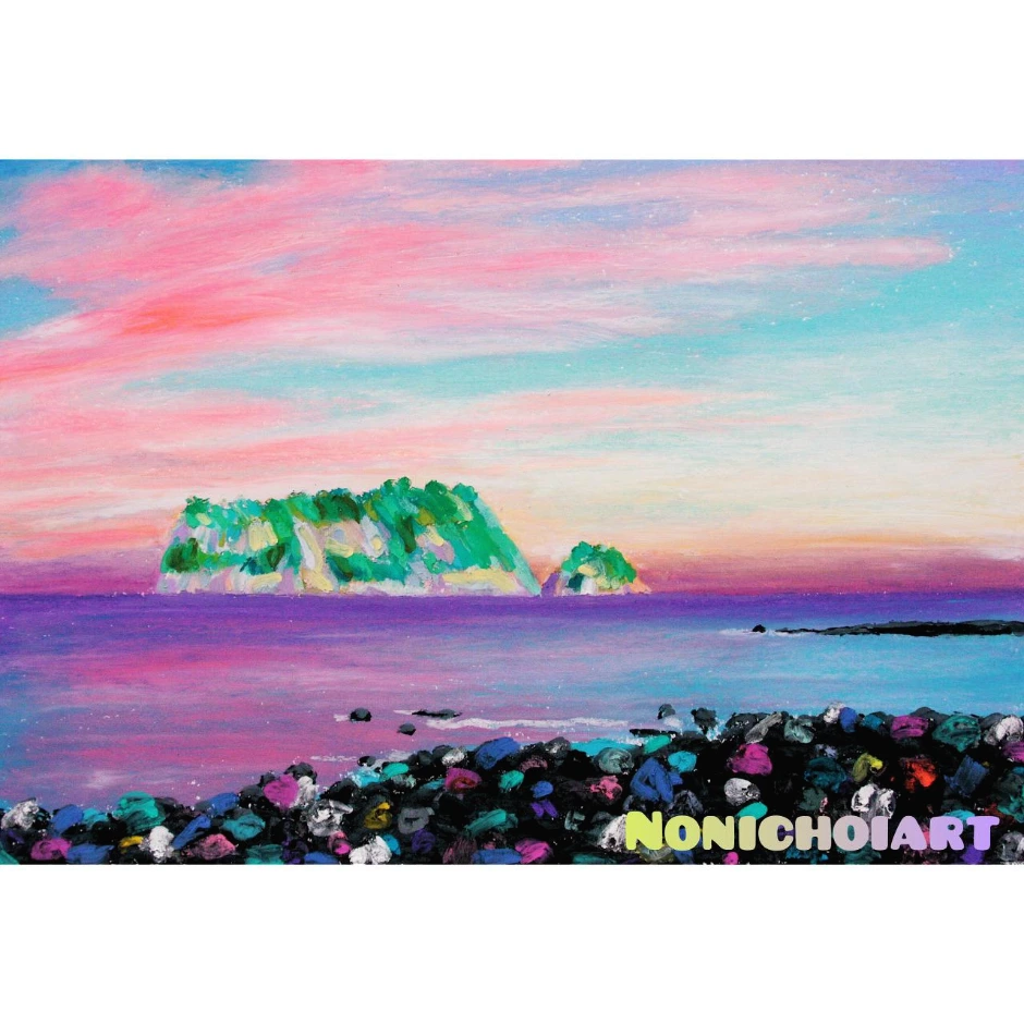 제주도 그림 풍경 신비로운 제주의 범섬종이 위에 오일파스텔노니 그림