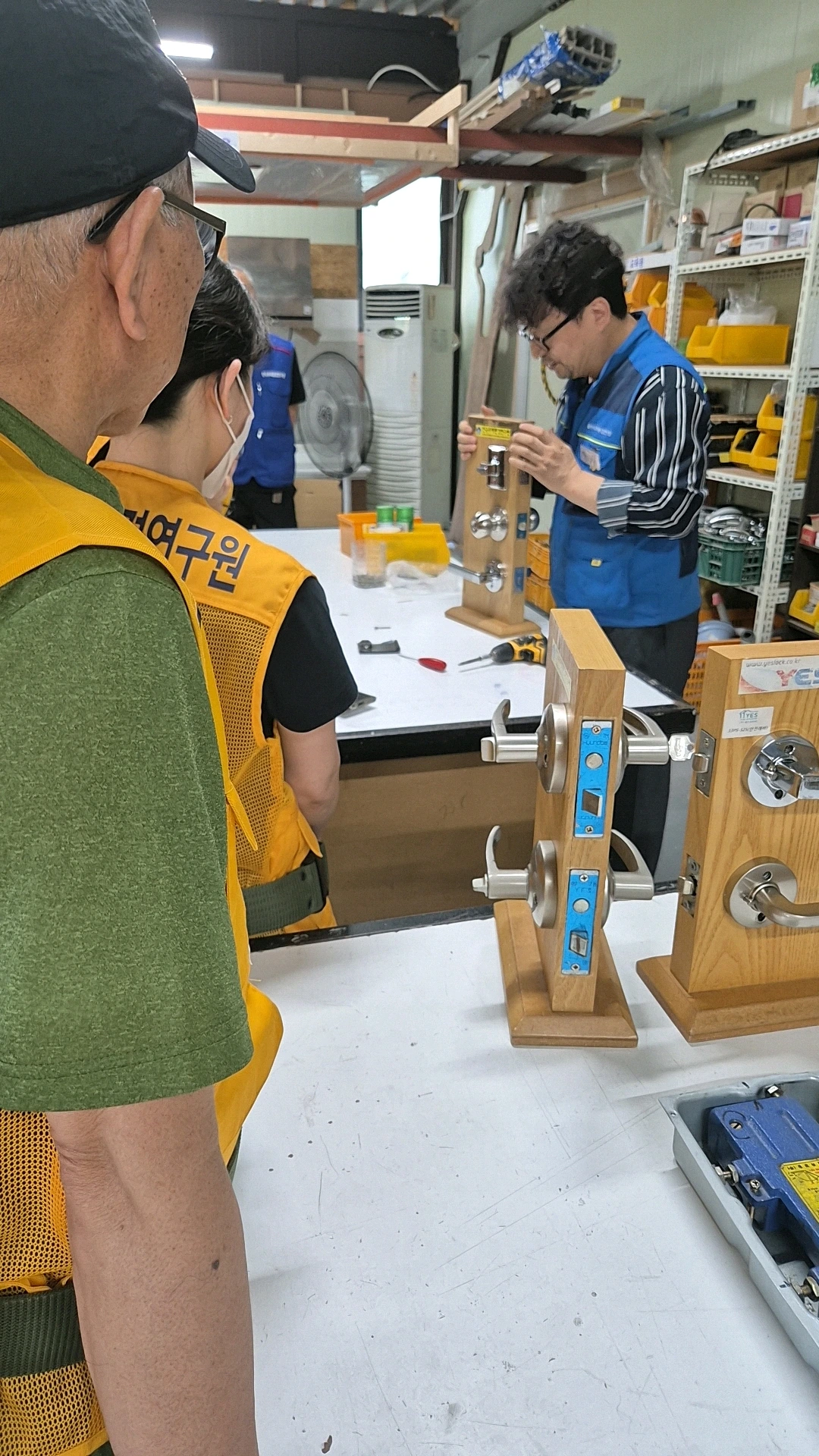 오전에 이론으로 배운 도어 손잡이의 종류별로 하나하나 분해하고 재결합해가면서 요령을 익혔다. 이론으로 배우고 현장에서 강사님이 직접 보여주시는 모습을 보면서 눈과 머리론 이해했지만, 실제 내가 내 손으로 해보는 것은 상황이 달랐다. 조금 형태가 다른 손잡이들을 여러 번 분해하고 결합해 가면서 눈으로 몸으로 익혔다. 몇 번 해보니까 어렵지 않았다.
