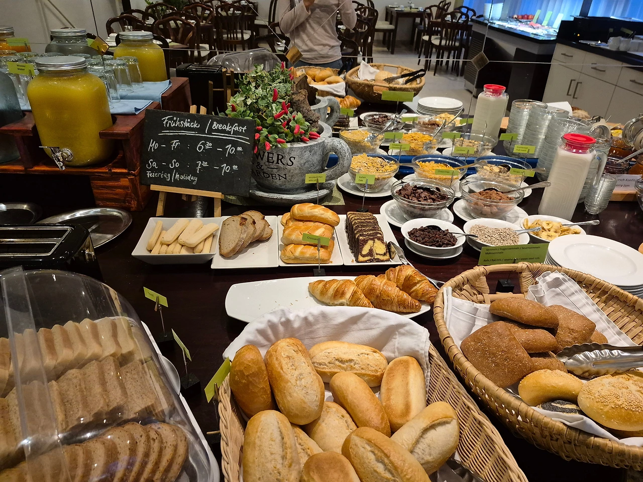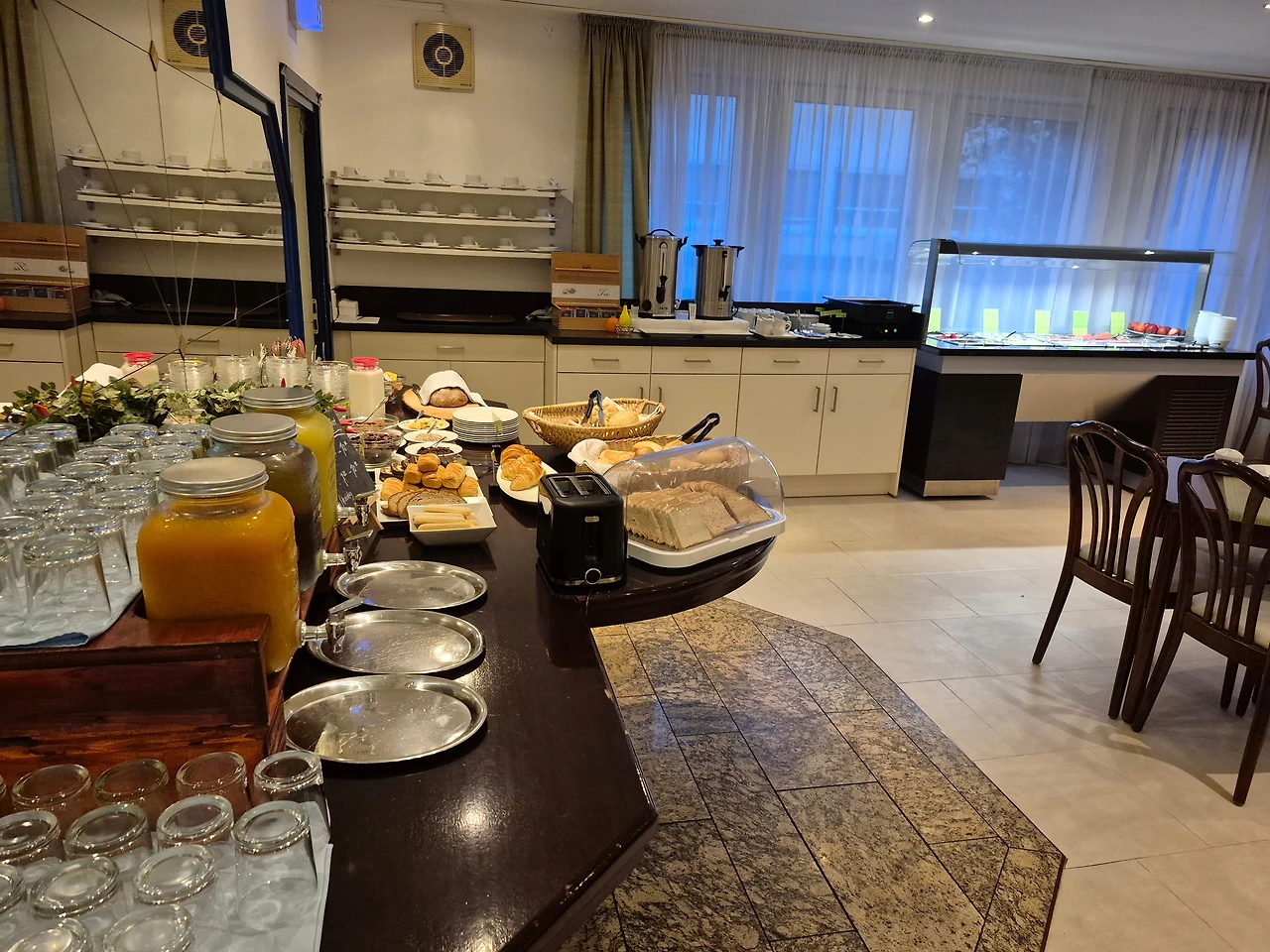 또 좋았던 건 조식이다. 조식 서비스가 시작되는 시간에 맞춰 여남은 테이블이 놓인 식사 공간으로 들어서자, 각 코너에 음식이 정갈하게 차려져 있었다. 투숙객 중 내가 가장 먼저 아침 식사를 하러 온 모양이었다. 무엇보다 빵 코너에 갈색의 빵들이 다양하게 비치돼 있어서 좋았다. 정제된 백색의 밀가루로 만든 음식을 피해야 하는 내게 이보다 고마운 일이 없었다.