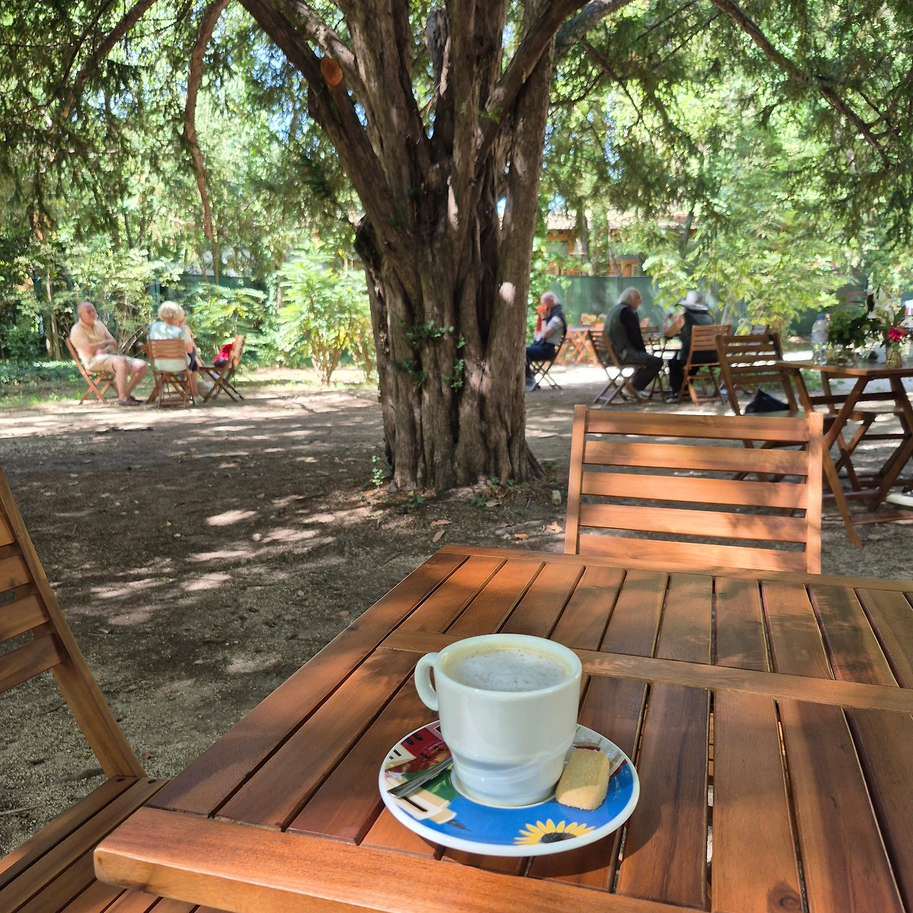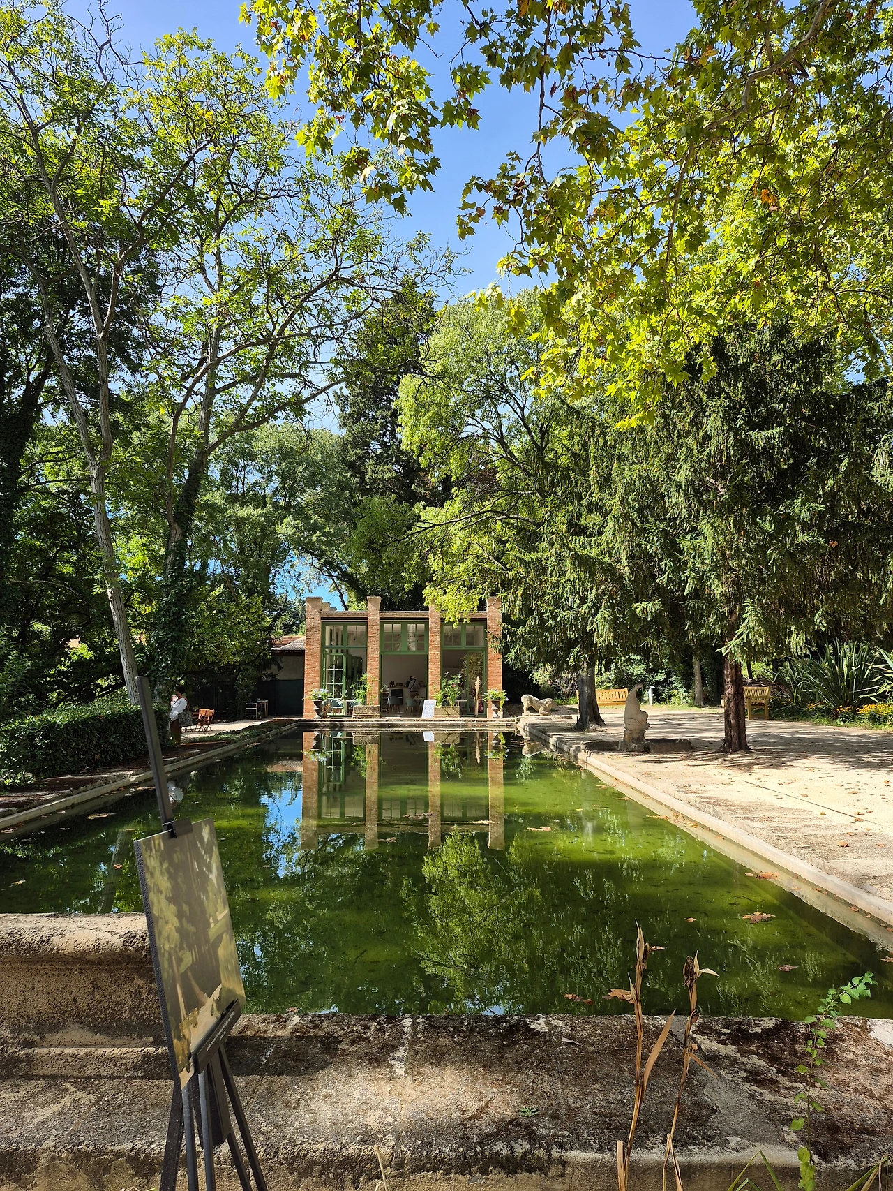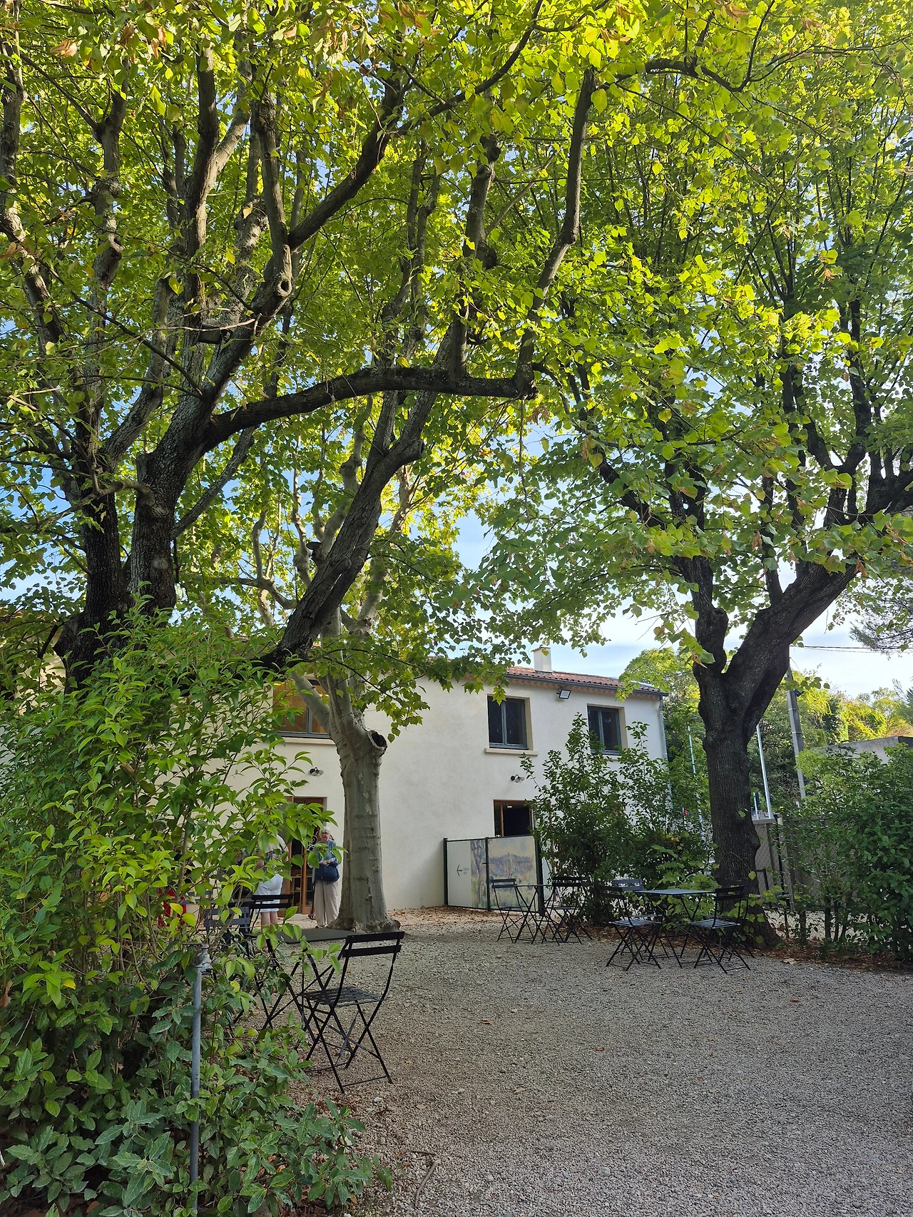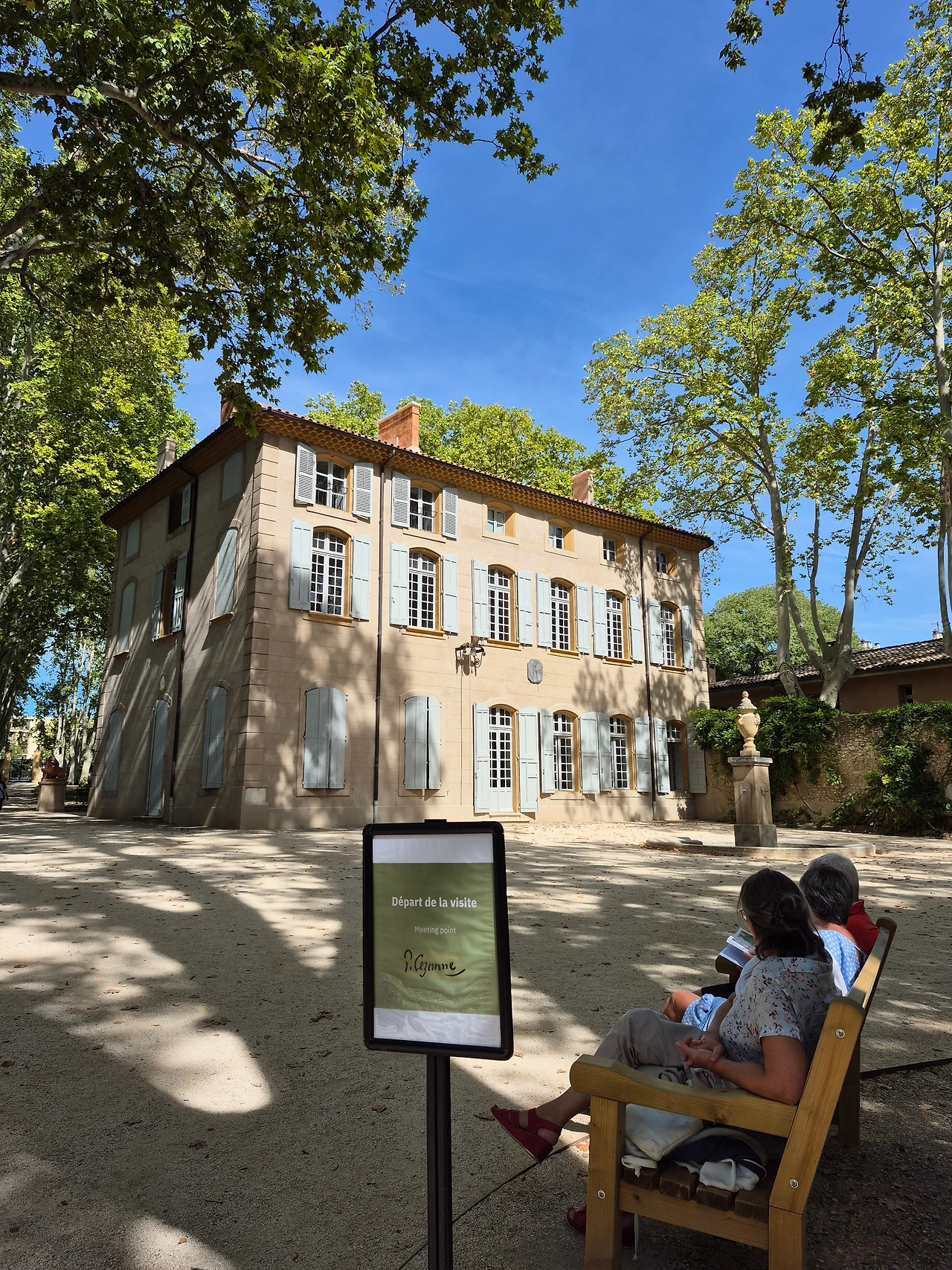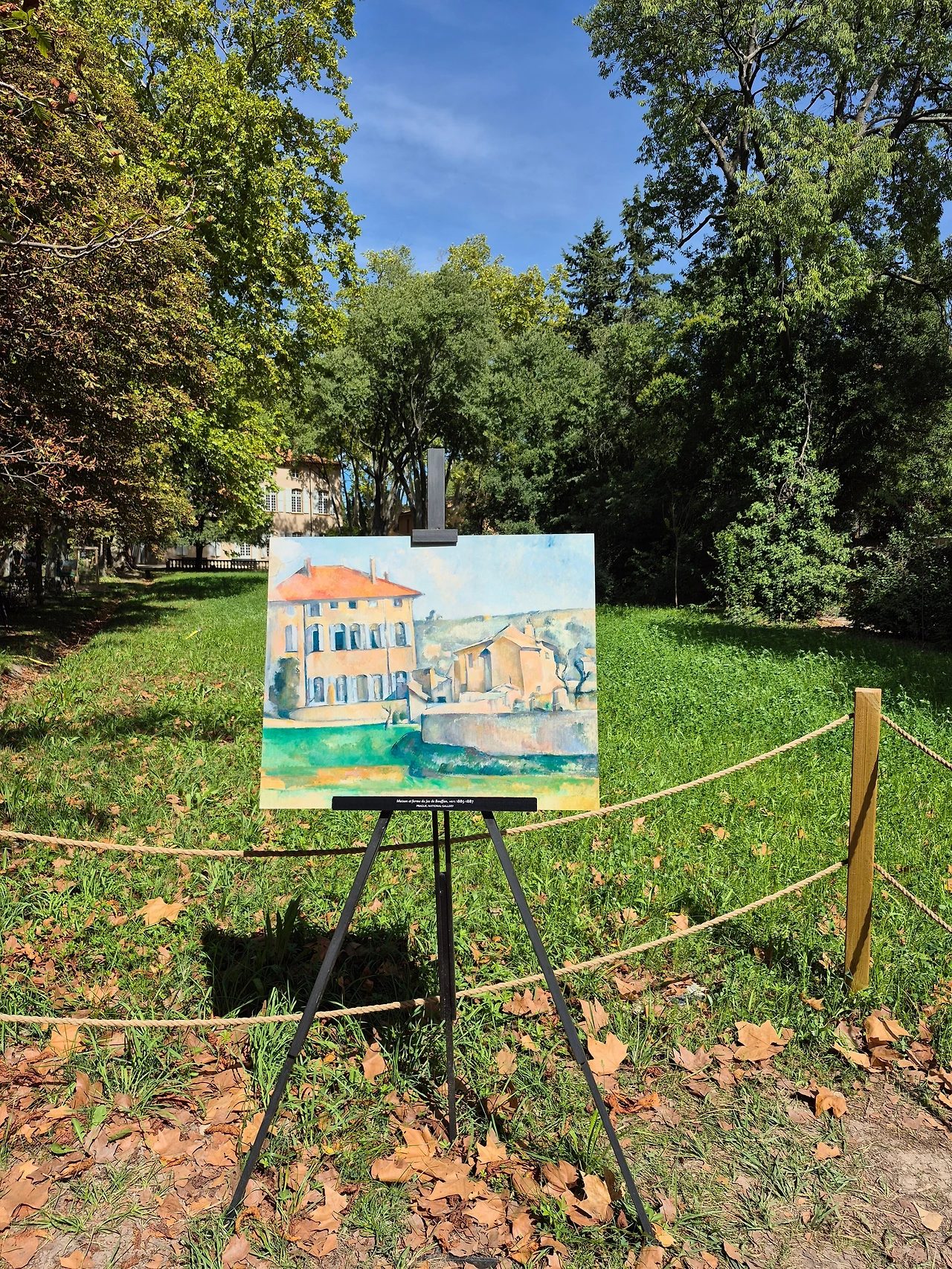 오후에는 세잔 가족이 살던 저택인 자 드 부팡(Bastide du Jas de Bouffan)으로 향했다. 19세기 프로방스식 저택과 넓은 정원이 있는 곳이었다. 예약 시간보다 일찍 도착해 먼저 정원을 둘러보고 카페에서 시간을 보냈다. 정원에는 그림의 대상이 된 풍경을 배경으로 세잔의 그림들이 이젤에 전시돼 있었다. 카페에서 커피를 받아서 아름드리나무 옆 테이블에 자리를 잡았다. 나무 테이블과 나무 의자에 나무 그림자가 내려와 앉았다.