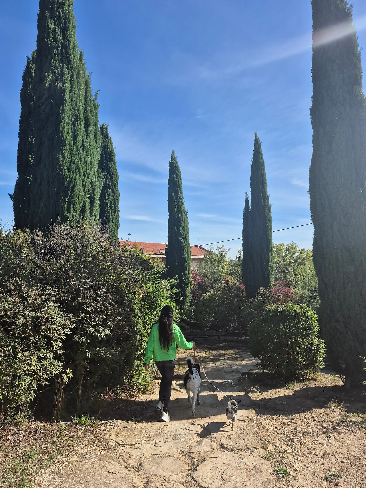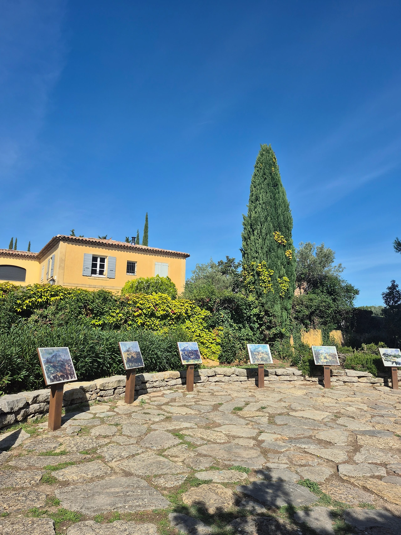 지도를 보니 세잔의 작업실에서 북쪽으로 더 걸어가면 화가들의 정원(Jardin des peintres)이 있어 가 보았다. 사이프러스가 곳곳에 뻗어 있는 언덕에 화가들의 그림이 이젤에 전시돼 있었다. 저 멀리 보이는 산은 세잔이 즐겨 그린 생트빅투아르산(Montagne Sainte-Victoire)인가 보았다. 개와 산책하는 사람들, 아이들이 있는 가족들 틈에 끼어 시야에 들어오는 탁 트인 전망을 한껏 즐겼다.