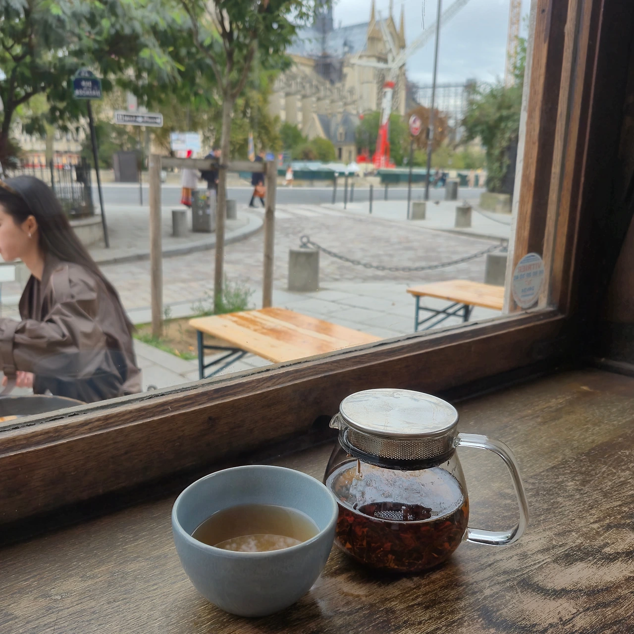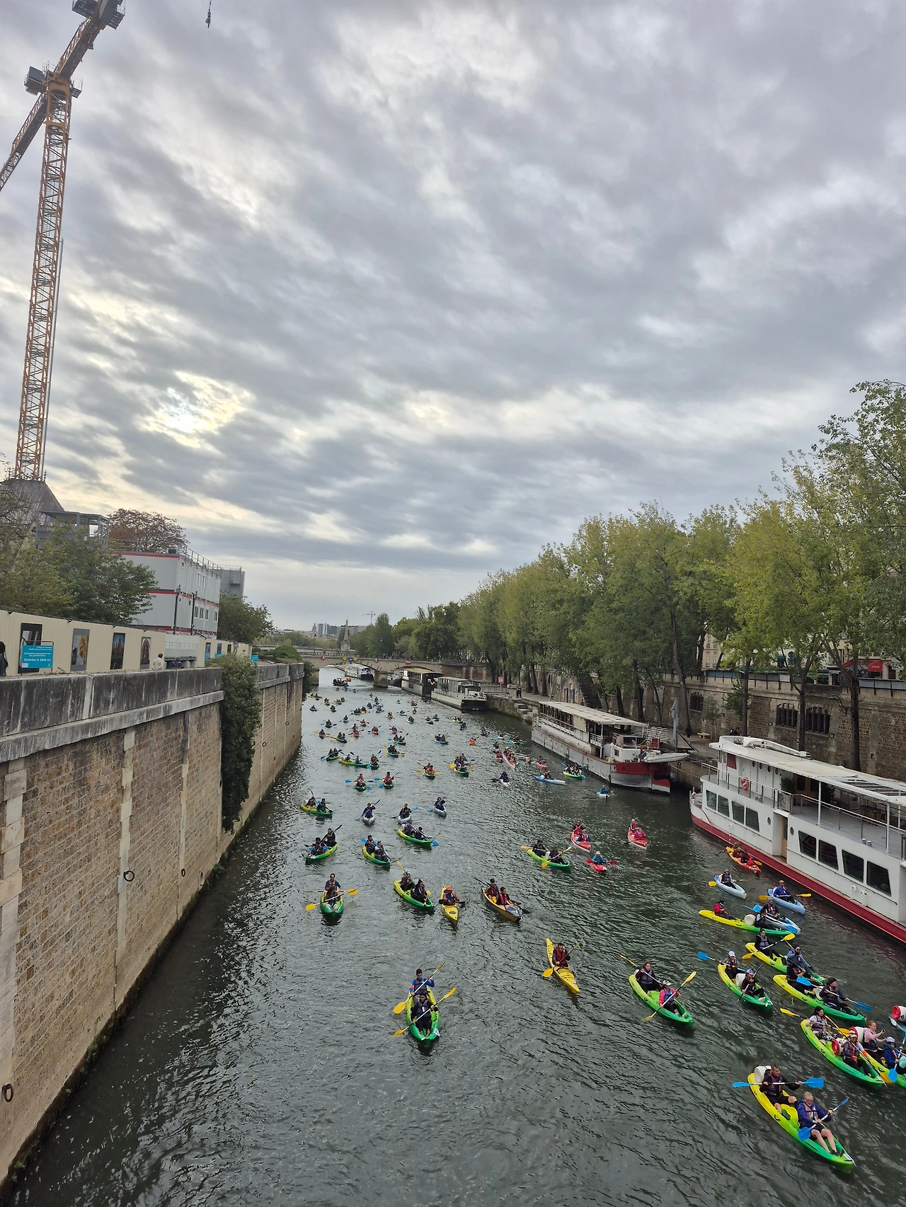아이는 기숙사로, 나는 숙소로 돌아갔다가 일요일 이른 오전에 다시 만났다. 노트르담 성당 앞 서점 셰익스피어 앤 컴퍼니(Shakespeare and Company)에 딸린 카페에서 만나기로 했다. 화재 후 복원을 마친 노트르담 성당이 다시 문을 열어 성당 입구부터 줄을 선 사람들이 광장을 가득 채우고 있었다. 카페에 가려고 다리를 건너는데 사람들이 알록달록한 색감의 배를 타고 무리를 지어 강을 건너고 있었다. 나중에 찾아보니 매년 9월에 열리는 카약 행사를 본 것이었다. 다리 위에서 내려다보고 있자니 장관이 따로 없었다.