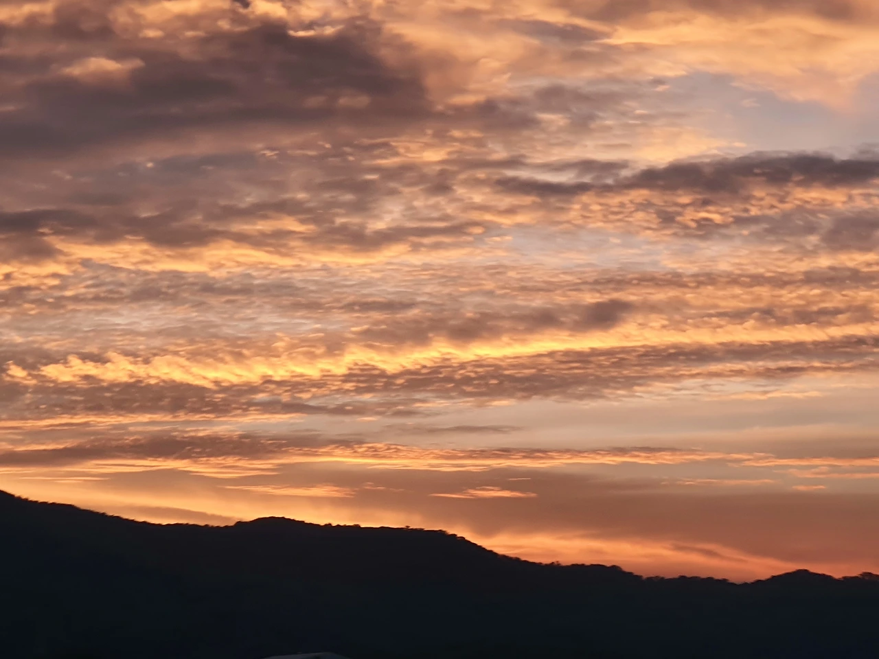 노을 진 하늘이 탁 트여 놓인 뷰.