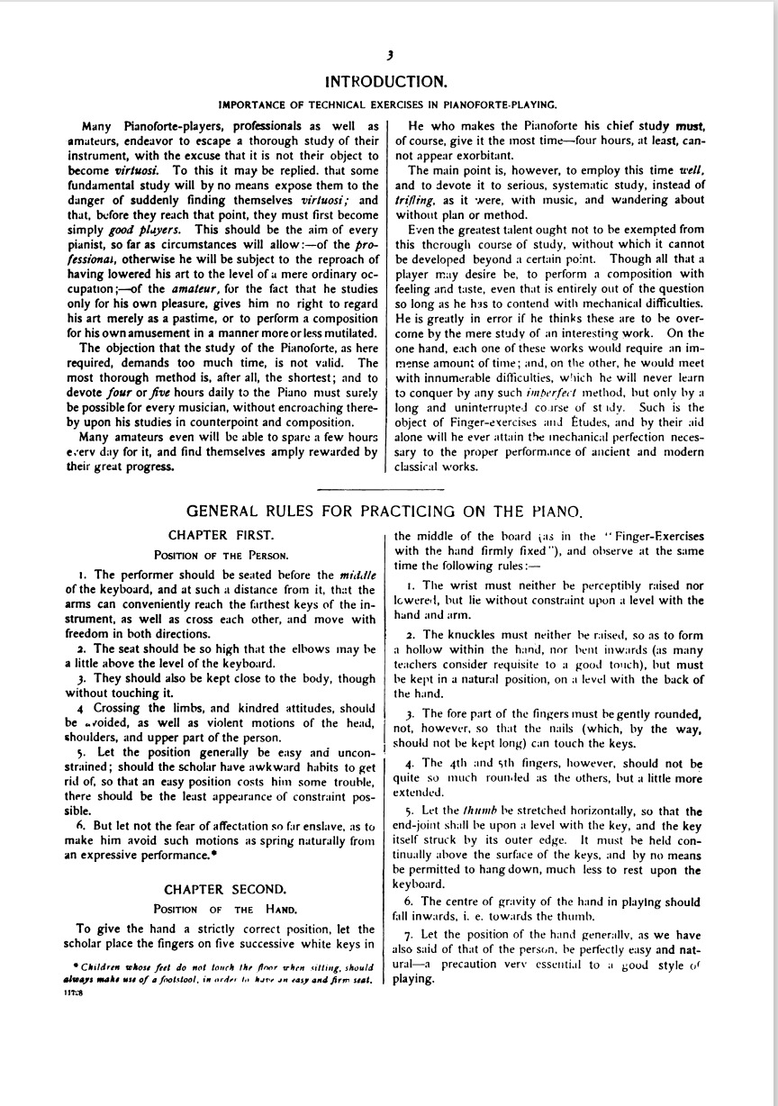 음악교사이던 플레디 씨가 피아노 테크닉을 위해 쓴 이 연습곡의 서문을 차분히 읽어보면 학생들의 연습방법에 개탄하는 모습 그리고 곡만 많이 연습하기보다 시간이 많이 소요되긴 하지만 테크닉연습을 많이 하는 것이 중요하다고 하며 결국은 그것이 곡을 제대로 연주할 수 있는 지름길 이라고 말한다.