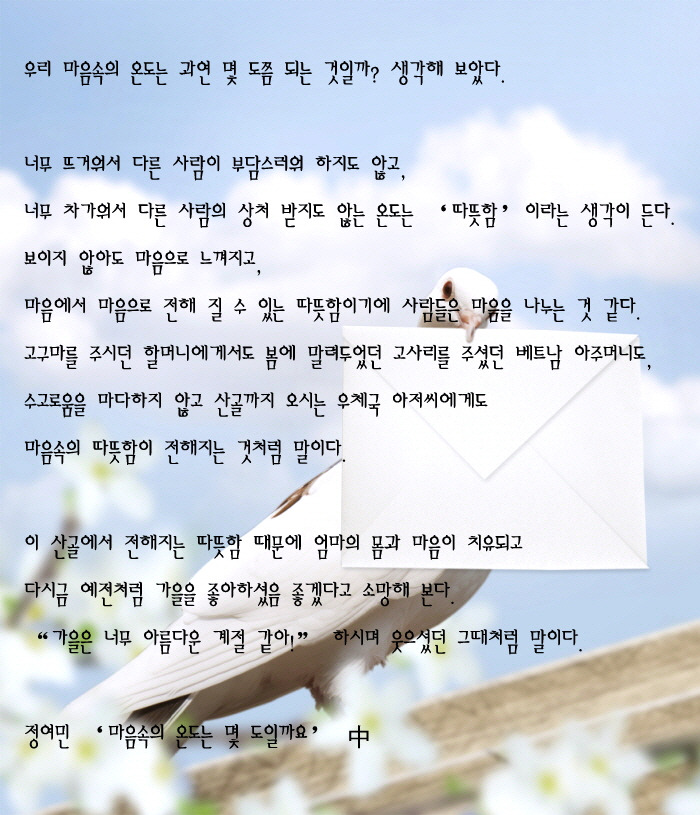 오늘은 그냥 정여민 군의 시집 한 권 주문하며 겨울 추위를 버텨봐야겠다.