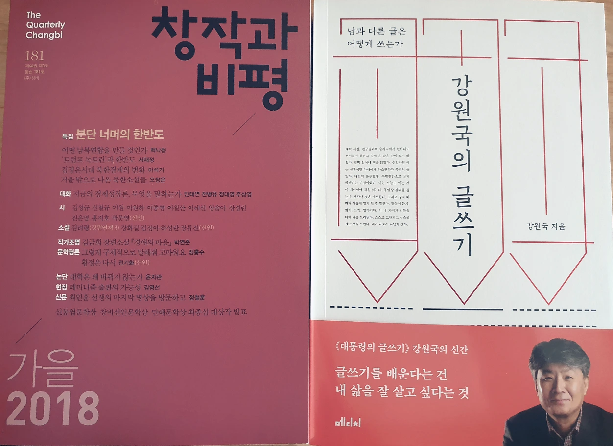 집에 오니 지난 5월, 코엑스에서 열린 도서전에서 주문했던 창작과 비평 가을호가 도착해 있다. 와인빛 가을색이 좋다. 회사 독서연수로 신청했던 9월의 책 강원국의 글쓰기도 와서 반가웠다. 얼른 연필을 들어 표지 안쪽에 오늘 날짜를 적어둔다.